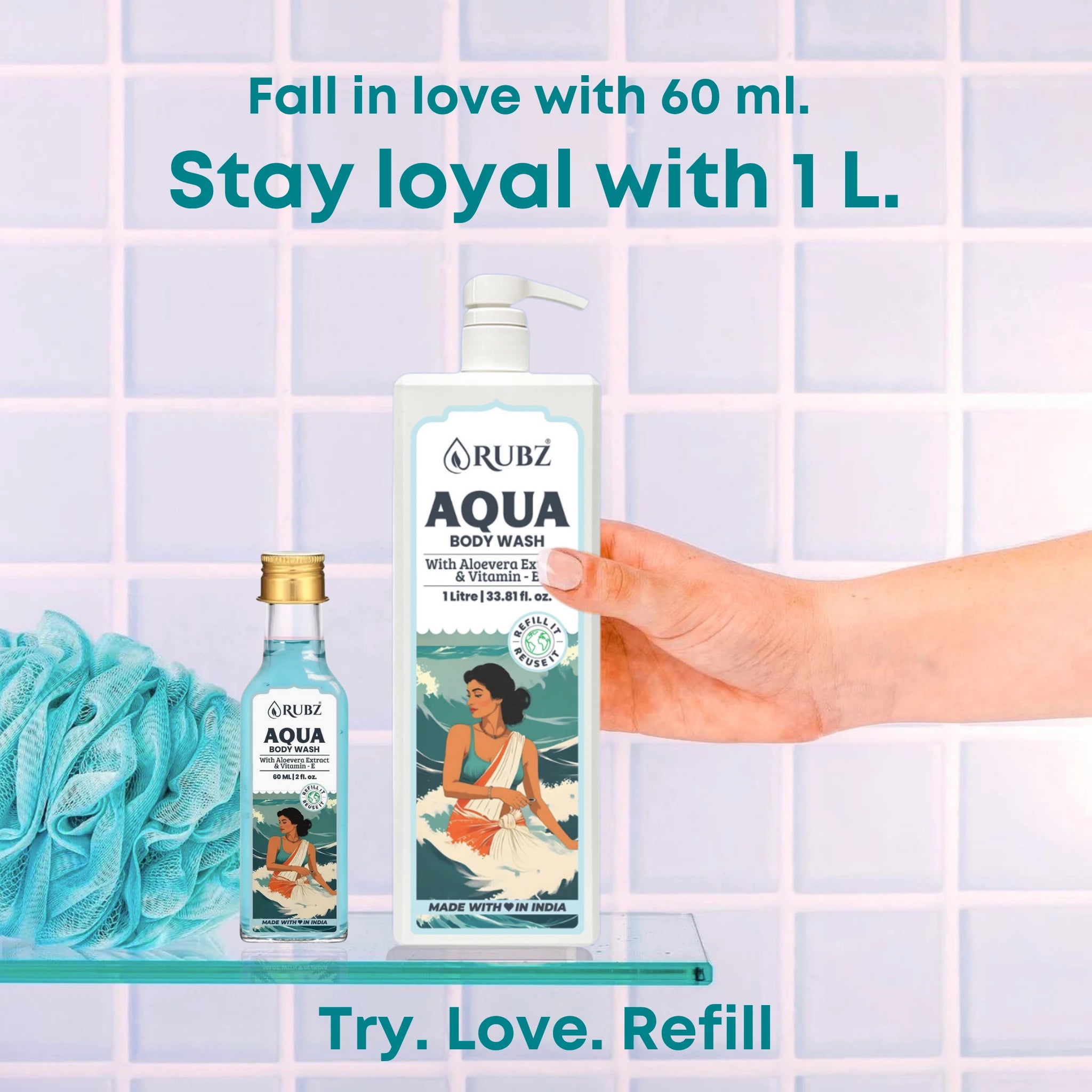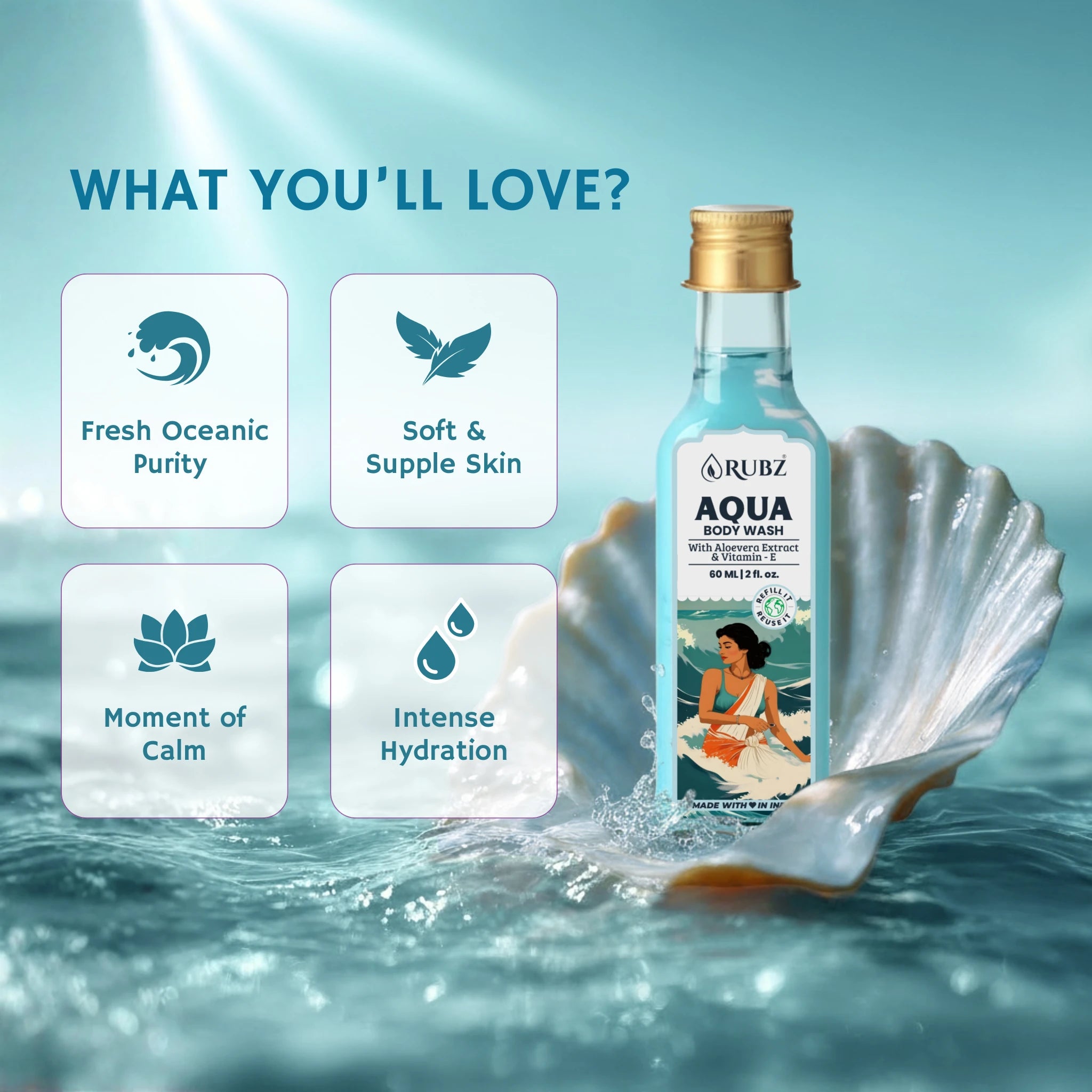 Our aqua body wash offers a cool, ocean-inspired scent that leaves you feeling refreshed and energized all day.