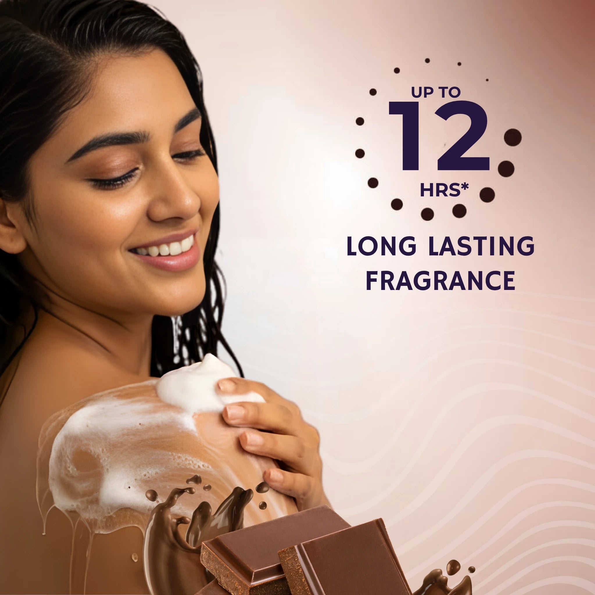 Its chocolate shower gel formula produces a rich, creamy foam that cleanses gently without stripping natural oils.
