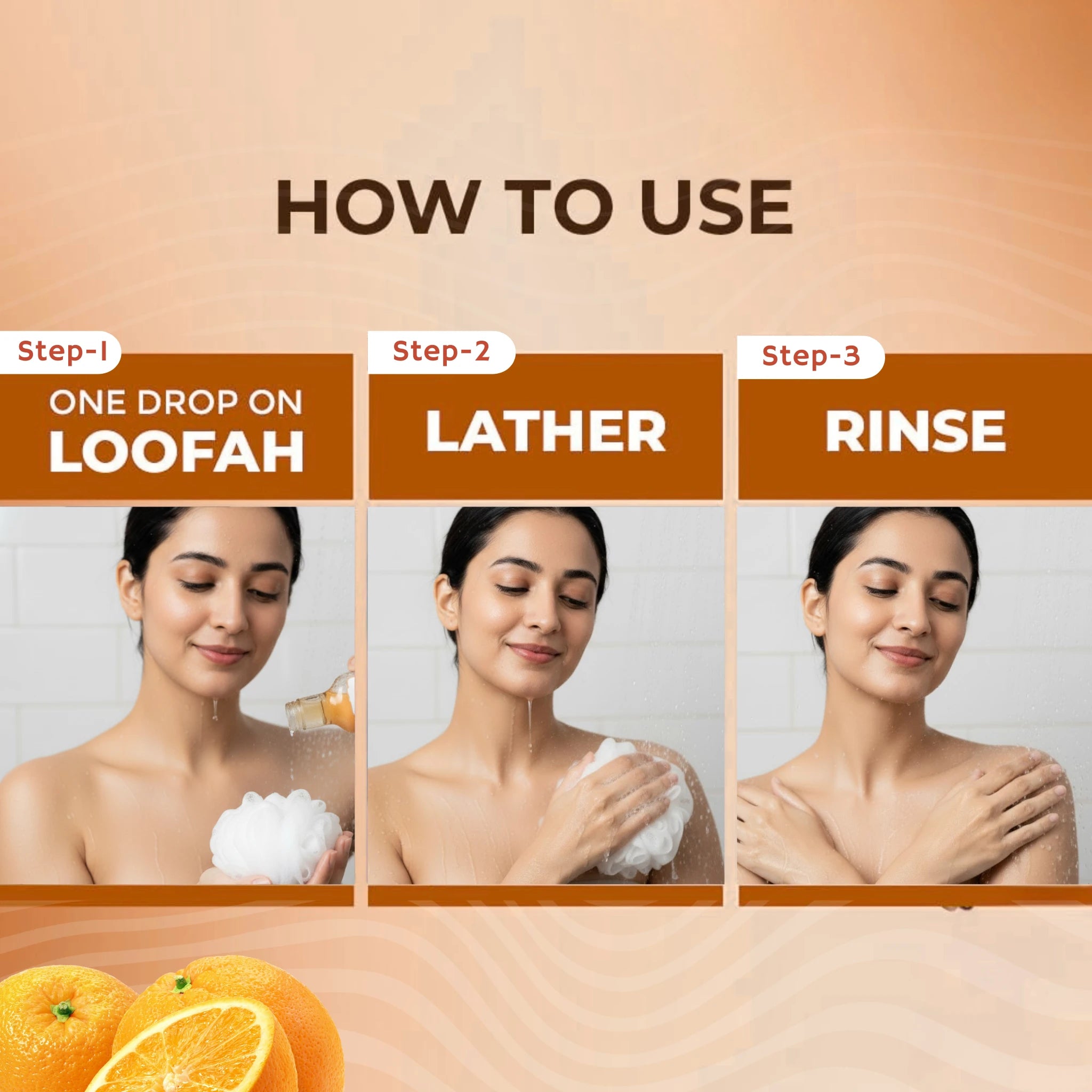A paraben free, sulphate free orange and ginger body wash gentle enough for daily use by men and women.