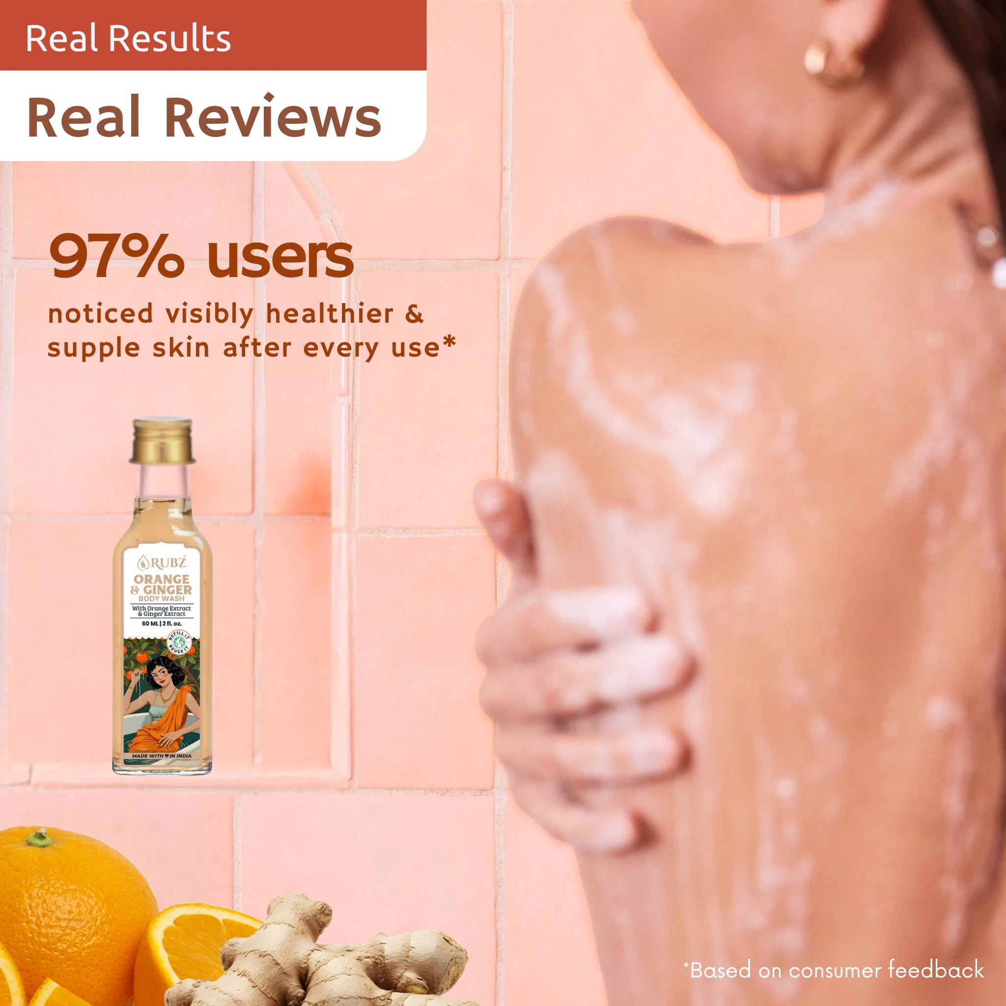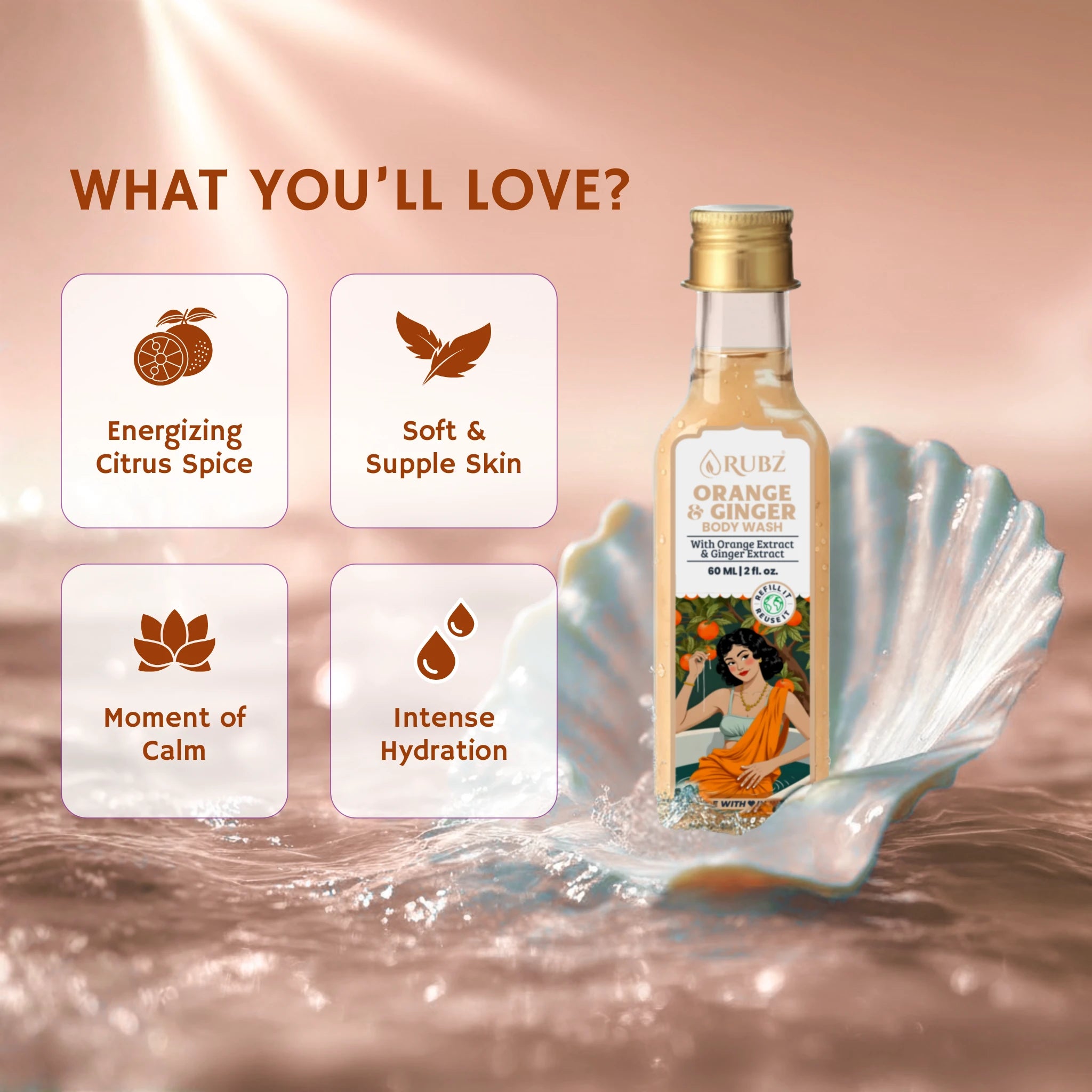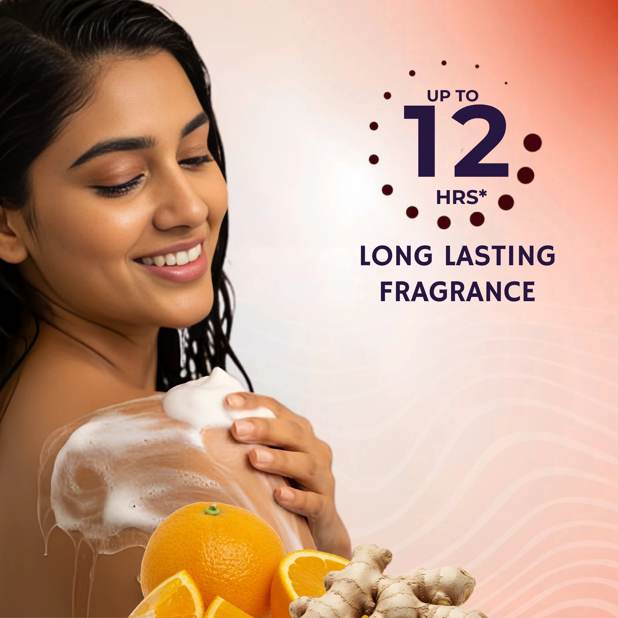The herbal orange and ginger body wash awakens your senses, making it perfect for a revitalizing morning shower.