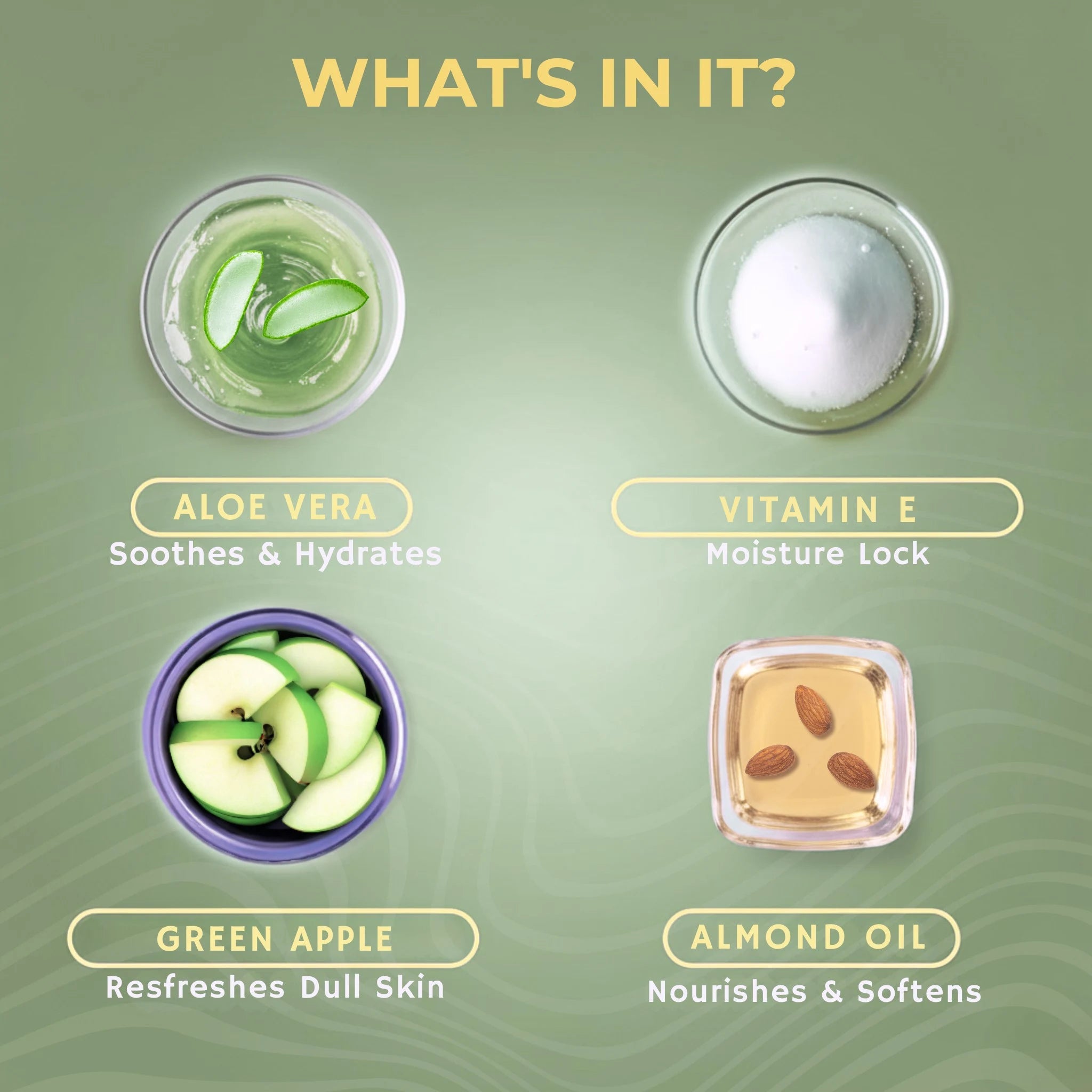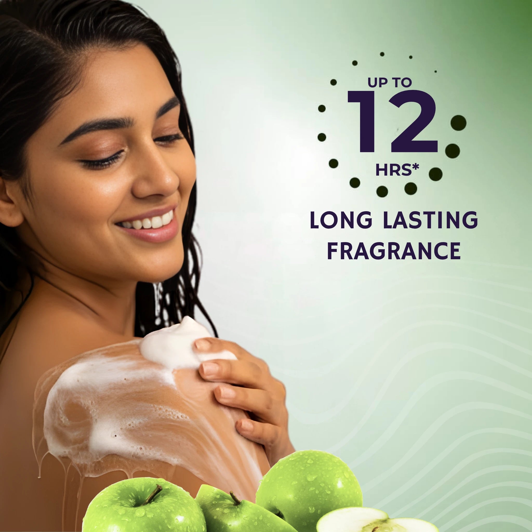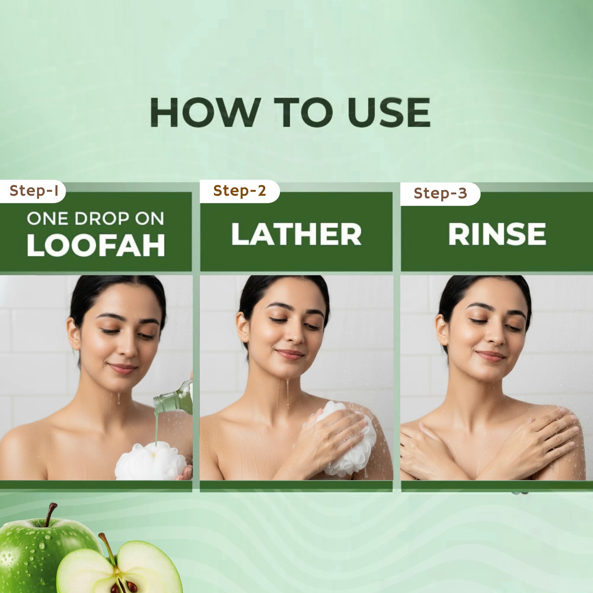 A paraben free, sulphate free green apple body wash perfect for daily use by men, women, and teens.