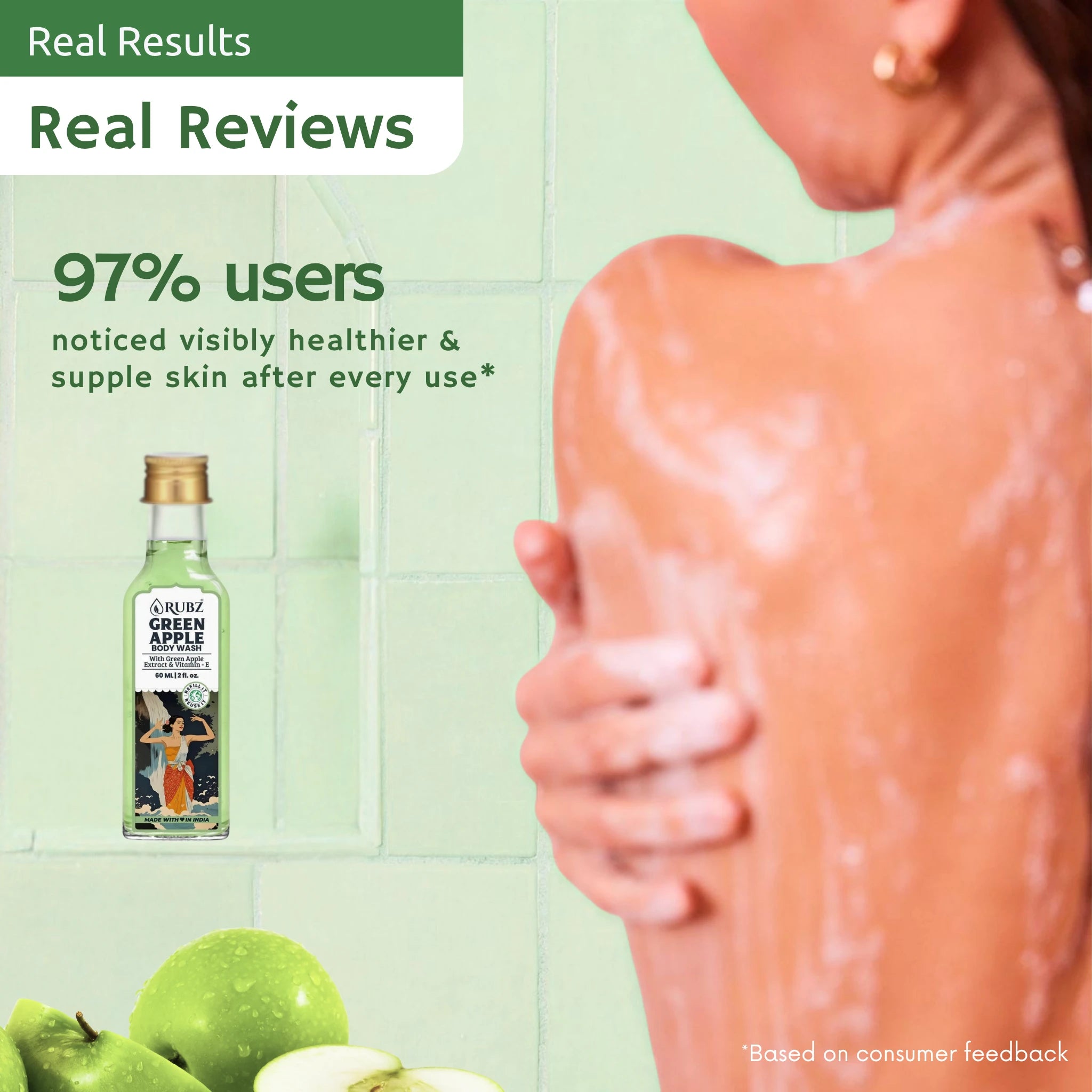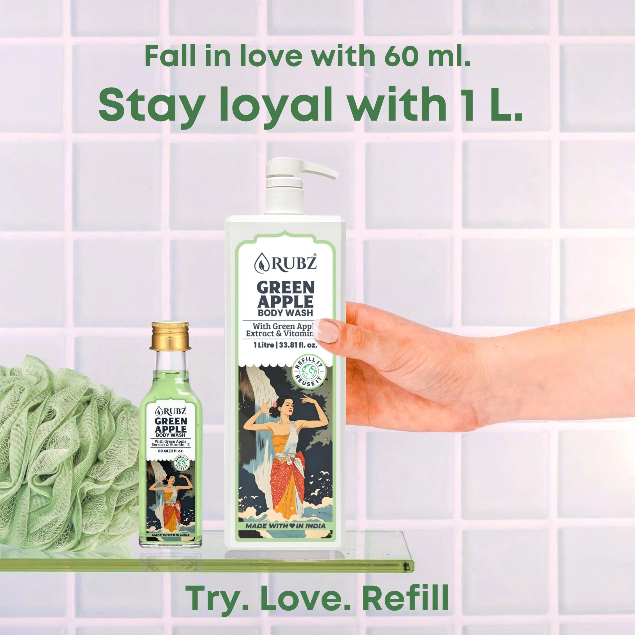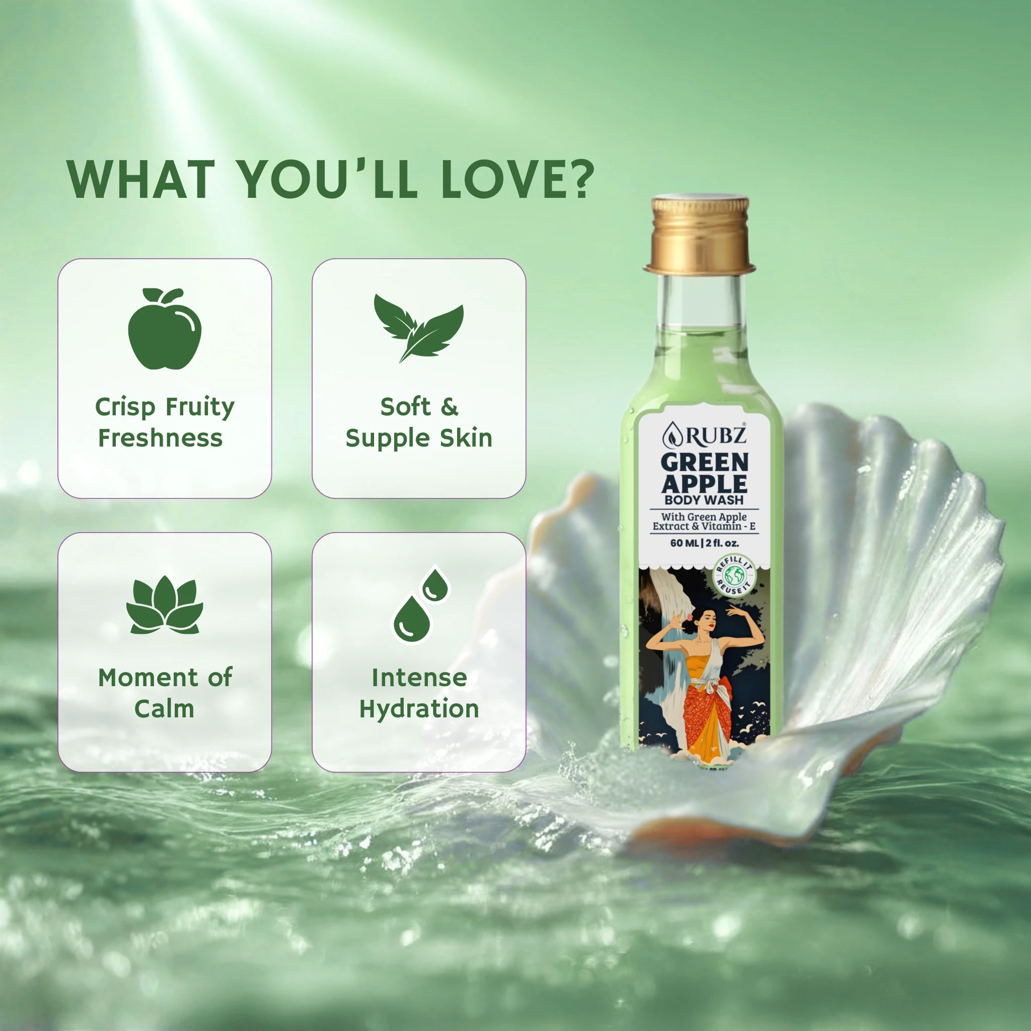 A paraben free, sulphate free green apple body wash perfect for daily use by men, women, and teens.