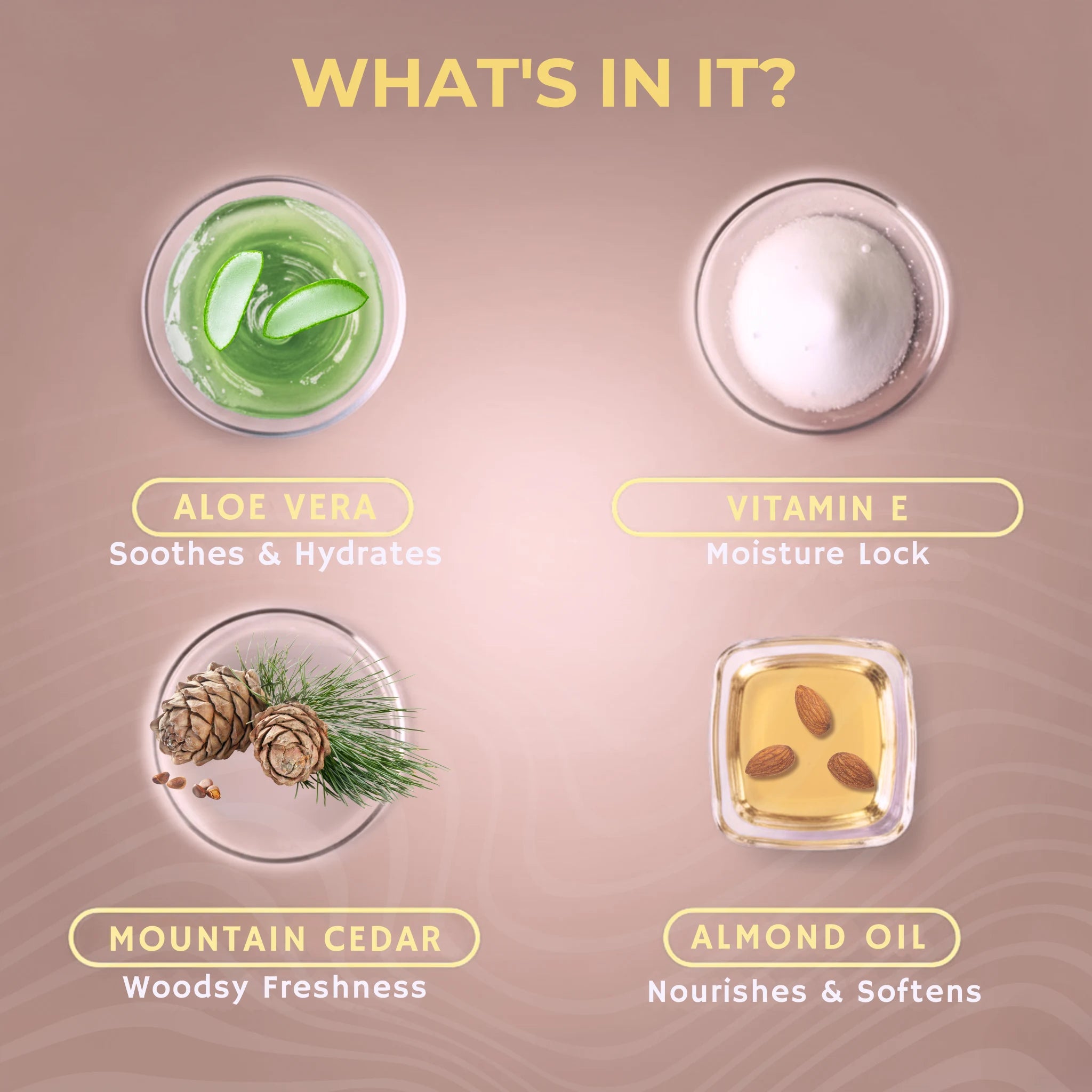 This natural cedarwood body wash gently removes dirt and excess oil while keeping your skin hydrated and soft.