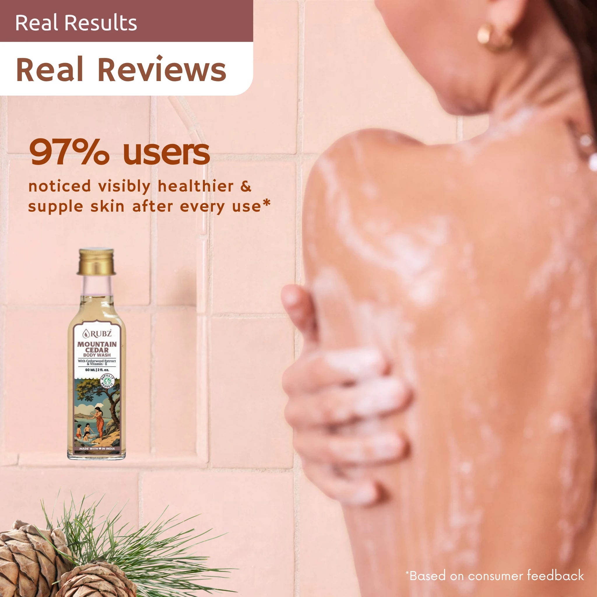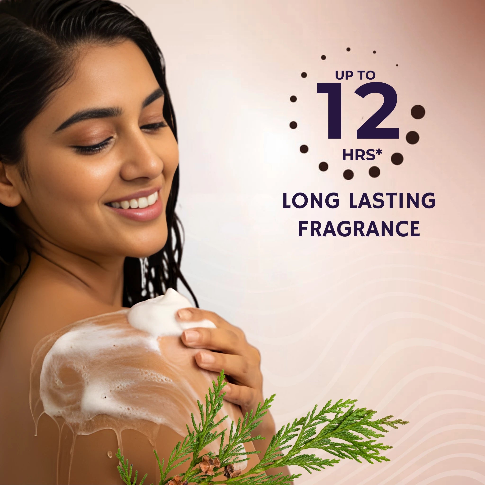 The herbal cedar body wash leaves a clean, crisp fragrance that stays with you throughout the day.