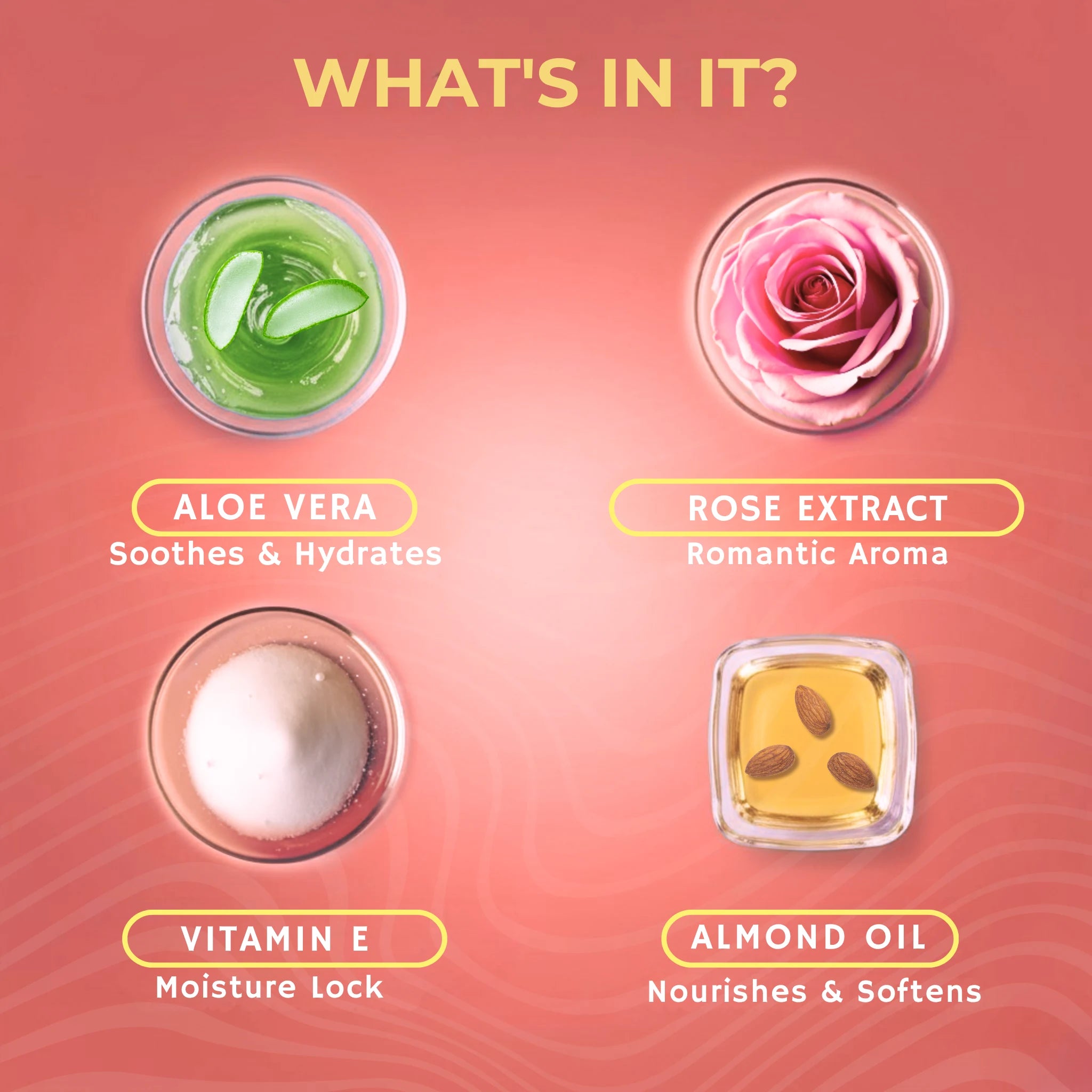 This natural rose body wash gently cleanses while locking in moisture for silky-smooth skin.
