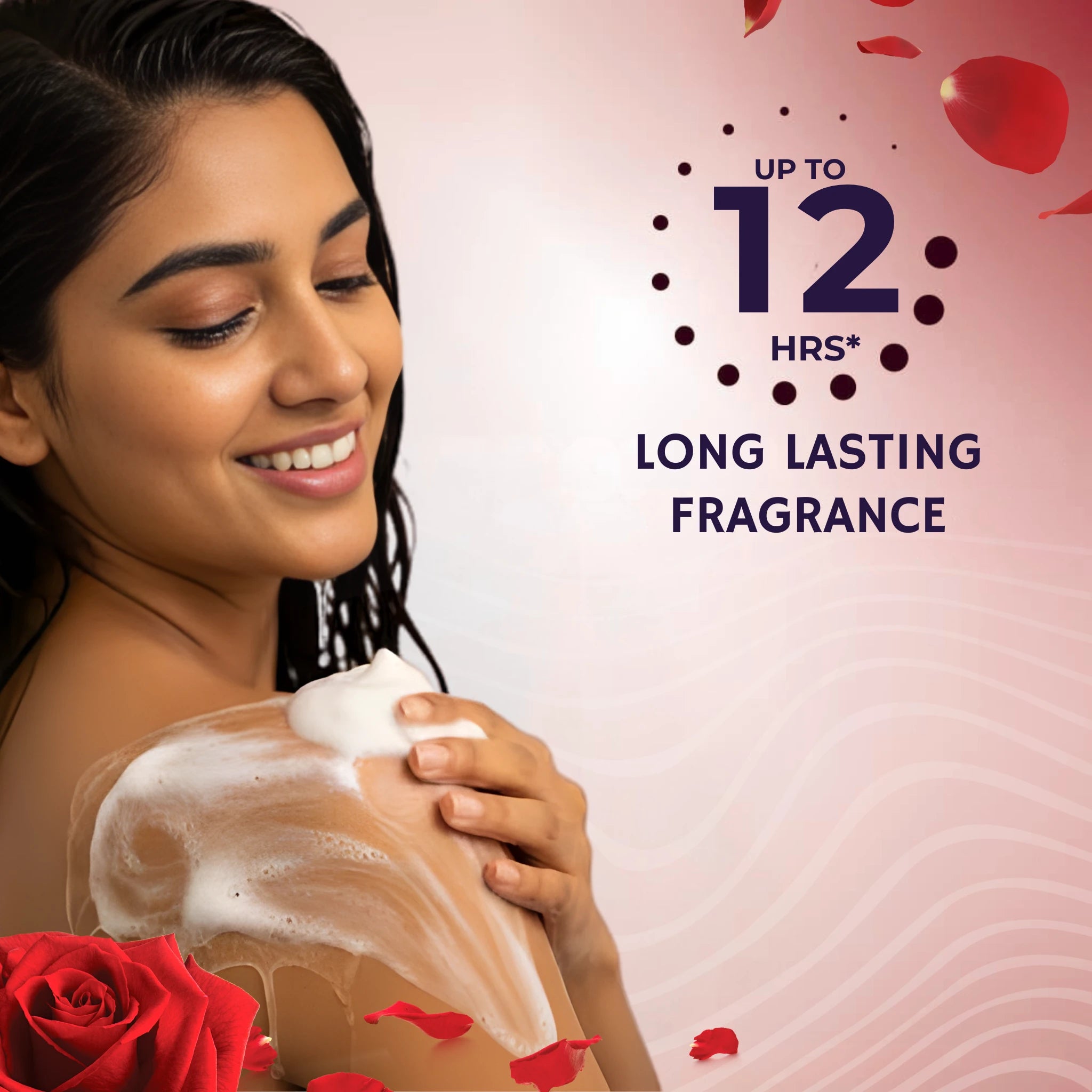 Our romantic rose body wash surrounds you with the timeless, soothing fragrance of freshly bloomed roses.