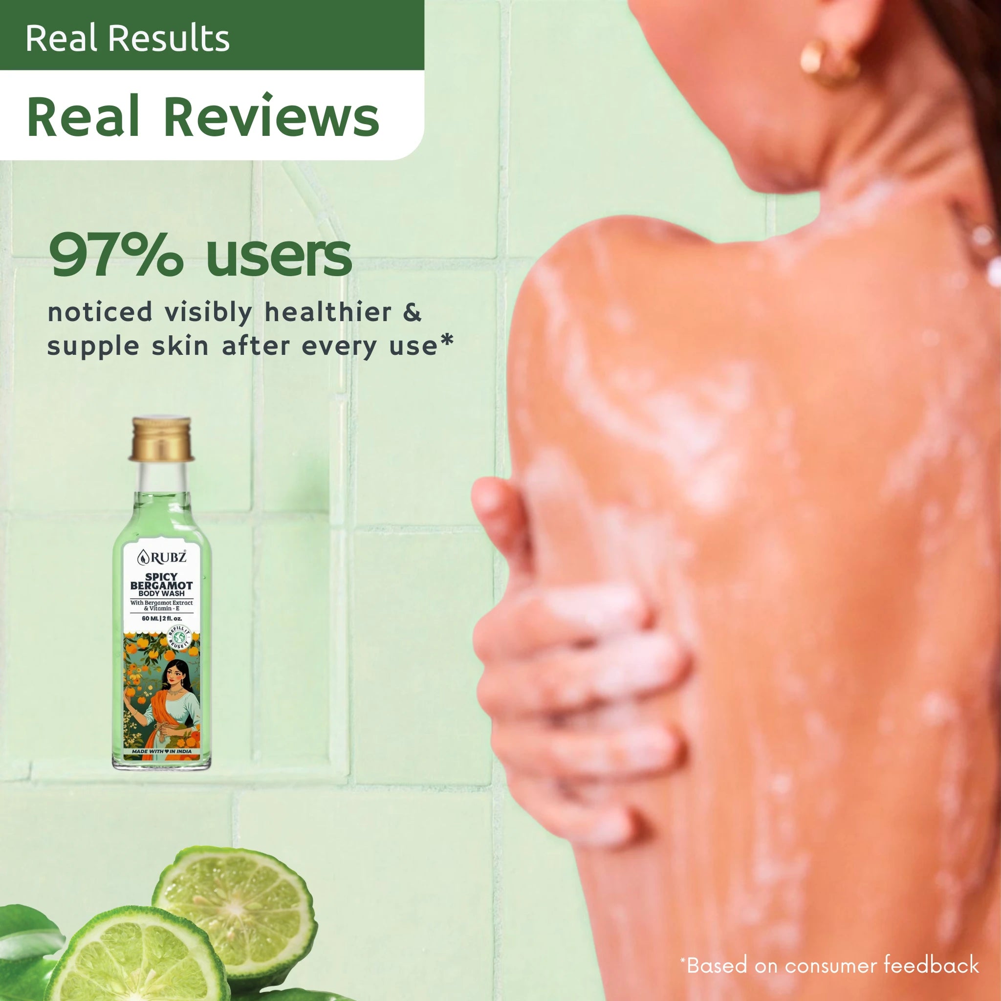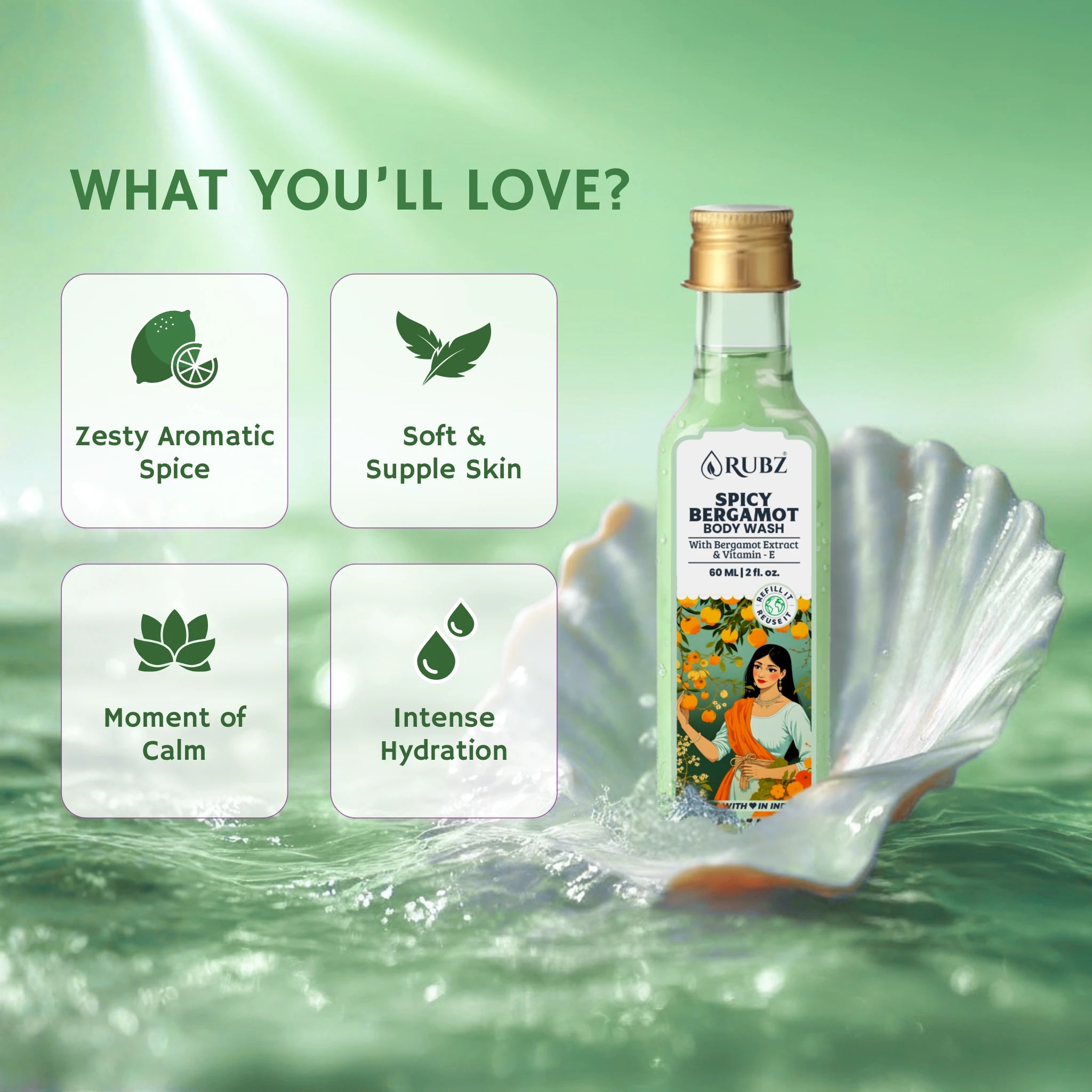 Our spicy bergamot body wash combines zesty bergamot with warm spicy notes to energize your senses every shower.