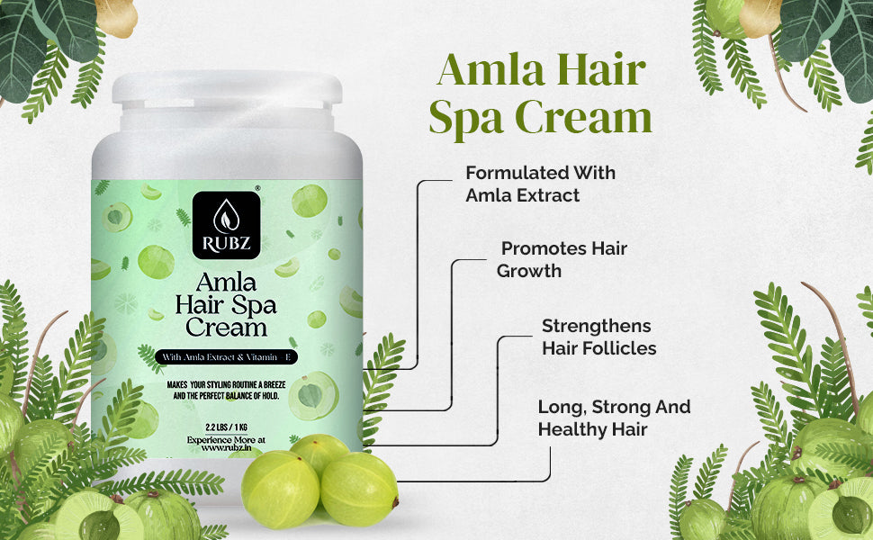 - Amla-Powered Hair Transformation: Our Amla Hair Spa Cream is enriched with the rejuvenating properties of Amla (Indian Gooseberry), known for its rich vitamin C content and antioxidants, promoting stronger, healthier hair from roots to tips.