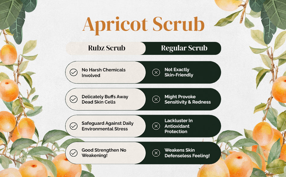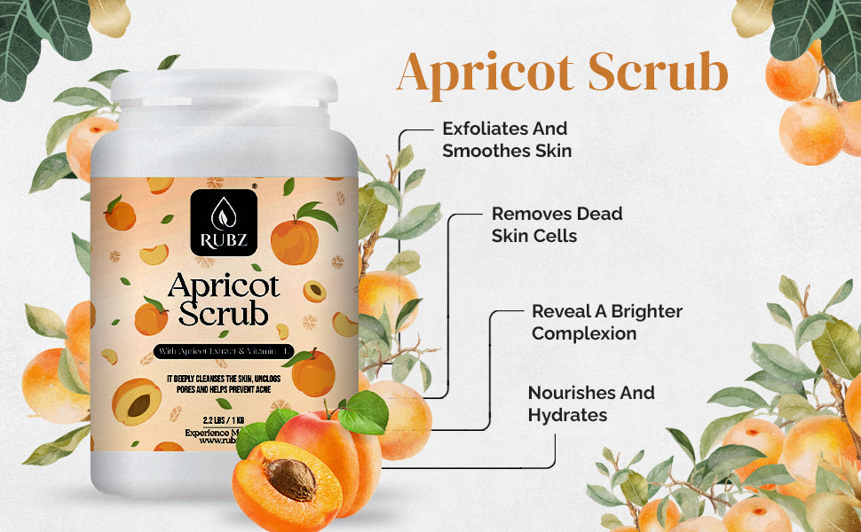 - Natural Exfoliation: Rubz Apricot Scrub harnesses the gentle yet effective exfoliating power of finely crushed apricot kernels to remove dead skin cells, revealing a smoother, brighter complexion.