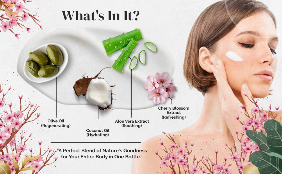 - Enchanting Fragrance: Immerse yourself in the delicate allure of cherry blossoms with our Cherry Blossom Body Lotion. The captivating fragrance lingers on your skin, providing a sensory journey of elegance and charm.