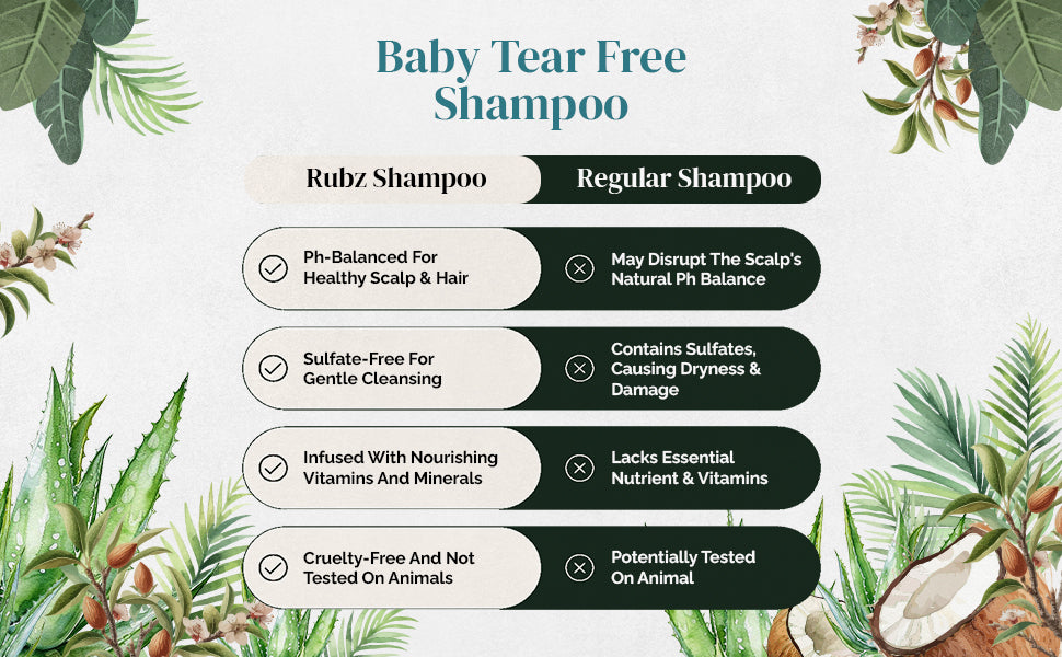 - Daily Use Delight: Suitable for daily use, Rubz 'No More Tears' Formula Baby Shampoo is an essential part of your baby's bath time routine, keeping their hair clean, soft, and smelling delightful every day.