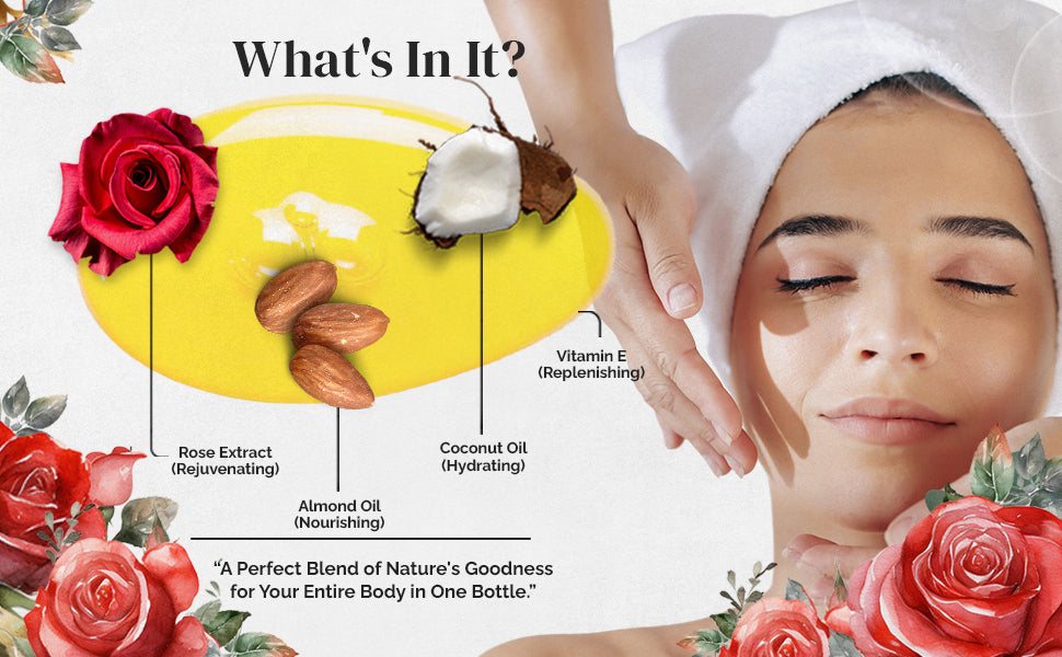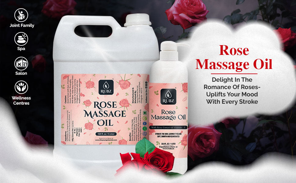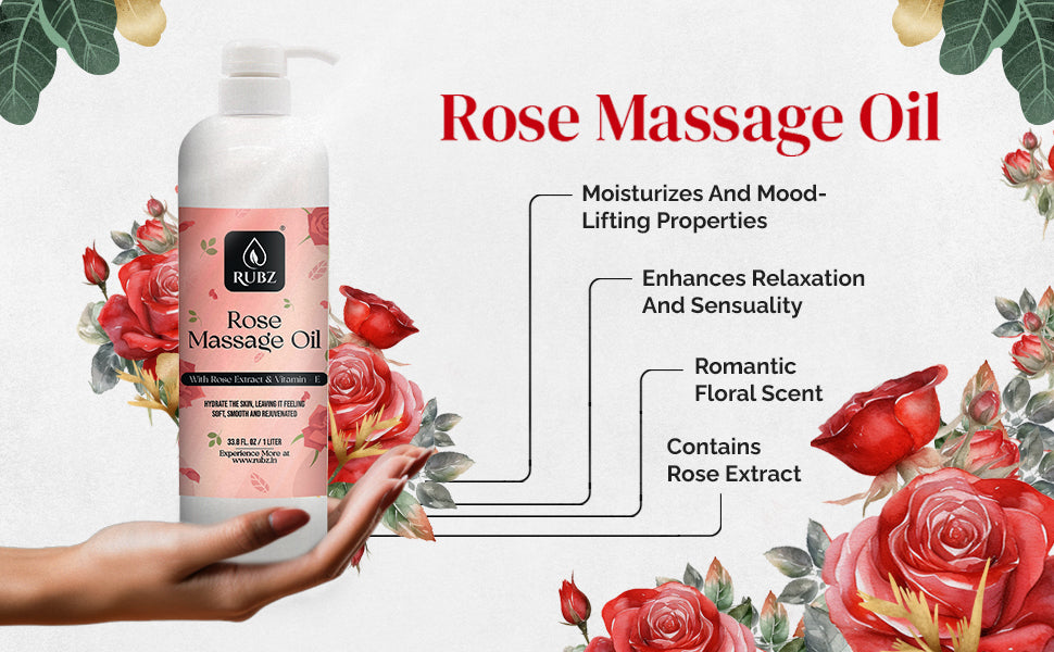 - Romantic Rose Aroma: Immerse yourself in the romantic and enchanting scent of Rose with our Body Massage Oil. Its delicate floral fragrance creates a sensual and passionate ambiance during your massage.