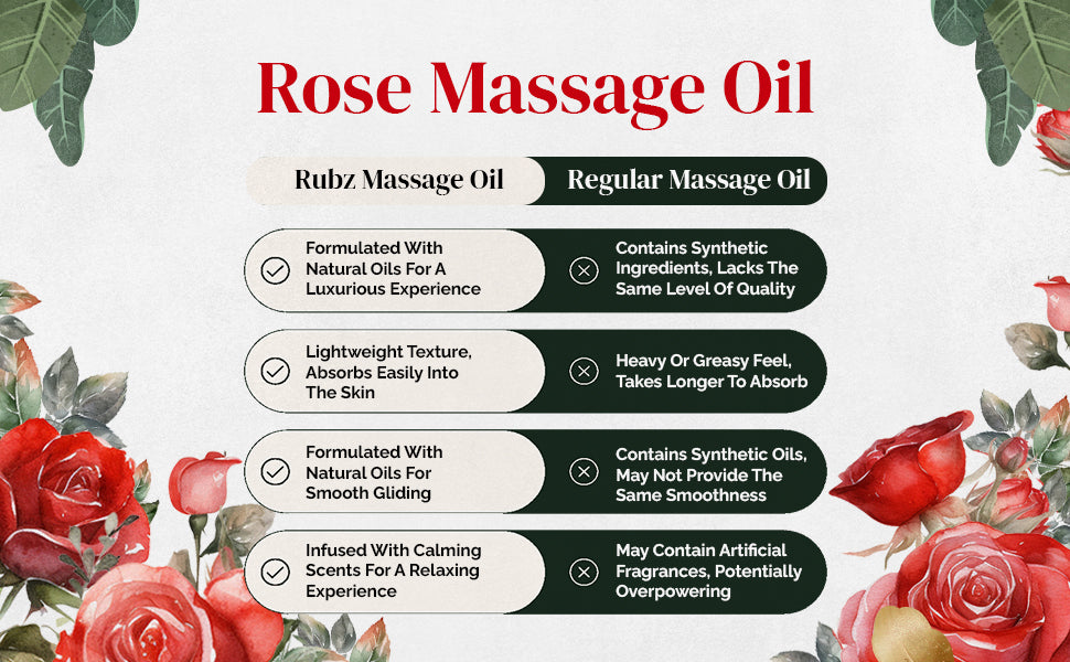- Skin Nourishment: Enriched with natural botanical extracts, Rubz Rose Body Massage Oil nourishes and hydrates your skin, leaving it soft, supple, and beautifully rejuvenated. Enjoy a dual benefit of relaxation and skin pampering.