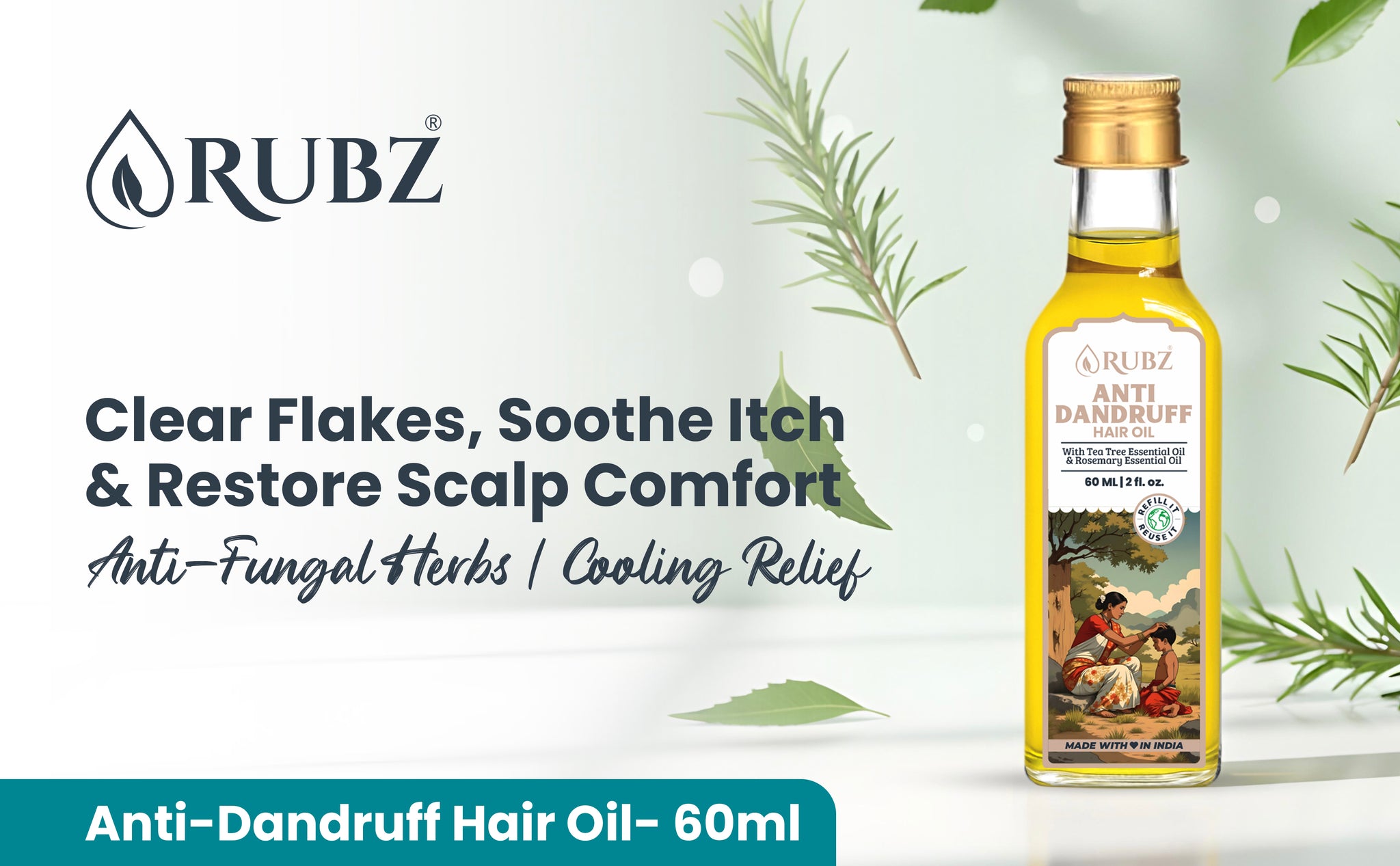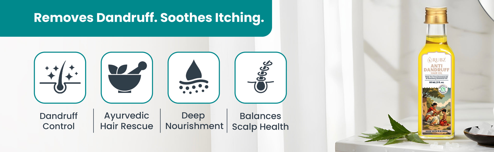 This herbal anti dandruff hair oil provides a cooling effect that calms irritation and redness. It helps relieve itching, leaving your scalp refreshed and comfortable.
