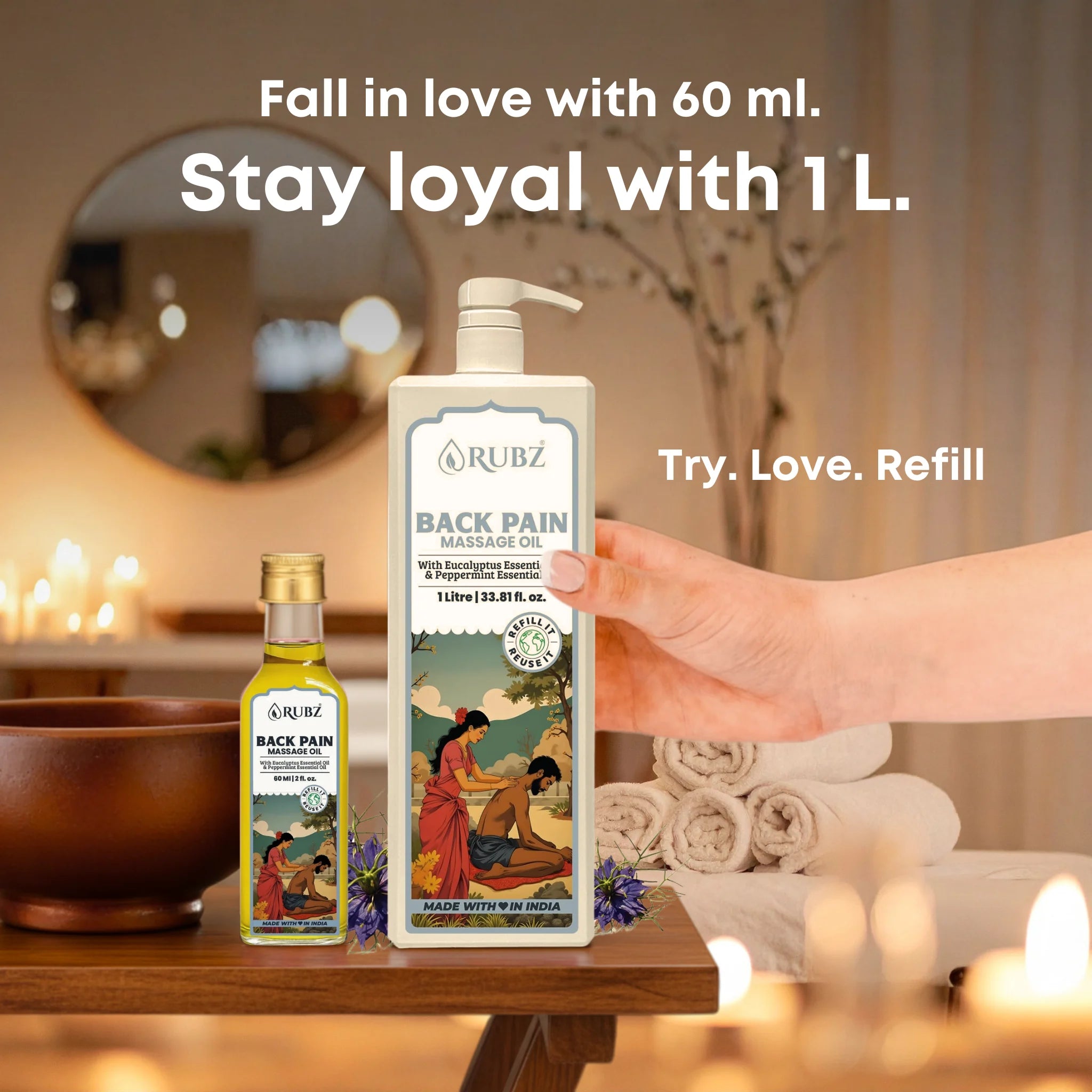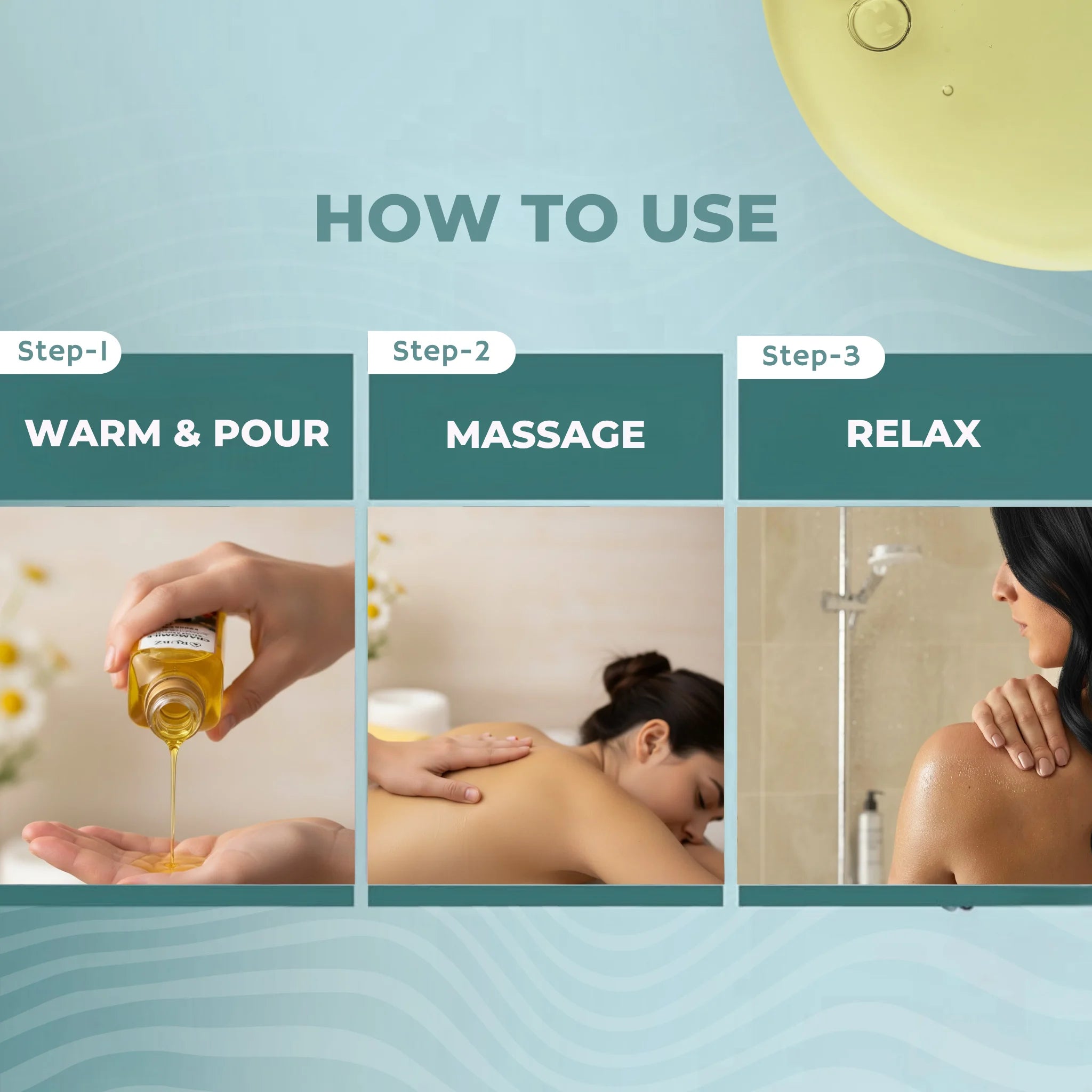 The herbal back massage oil boosts blood flow, helping your back feel lighter and more flexible.