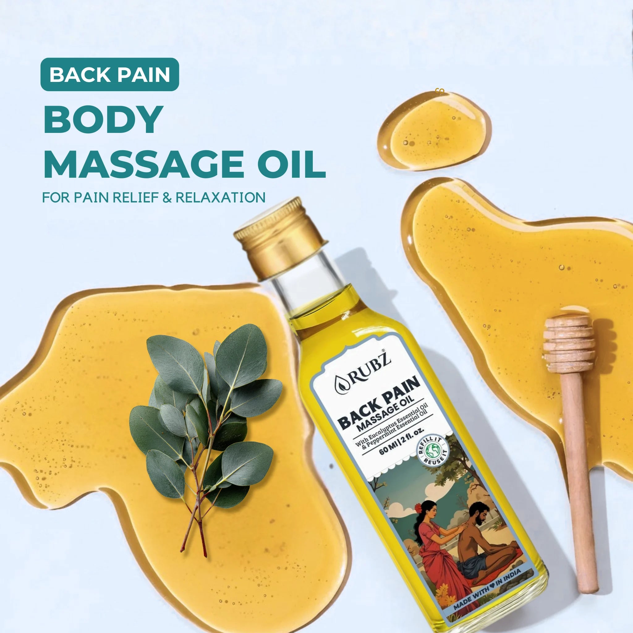 Our back pain massage oil targets sore muscles, easing discomfort and promoting better mobility.