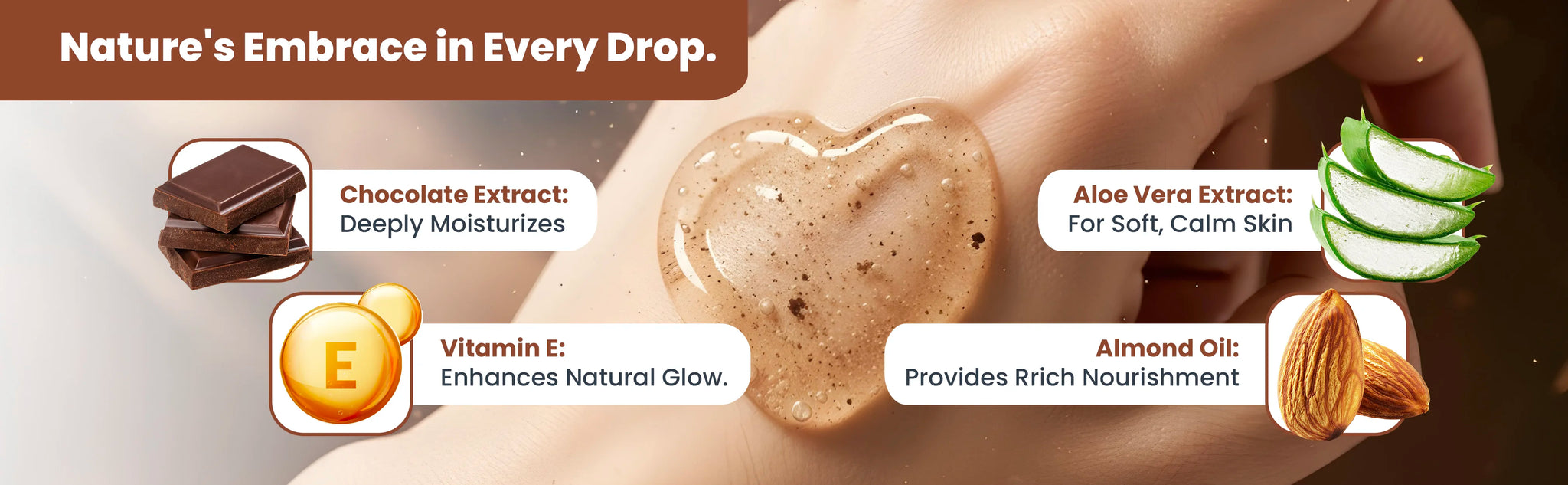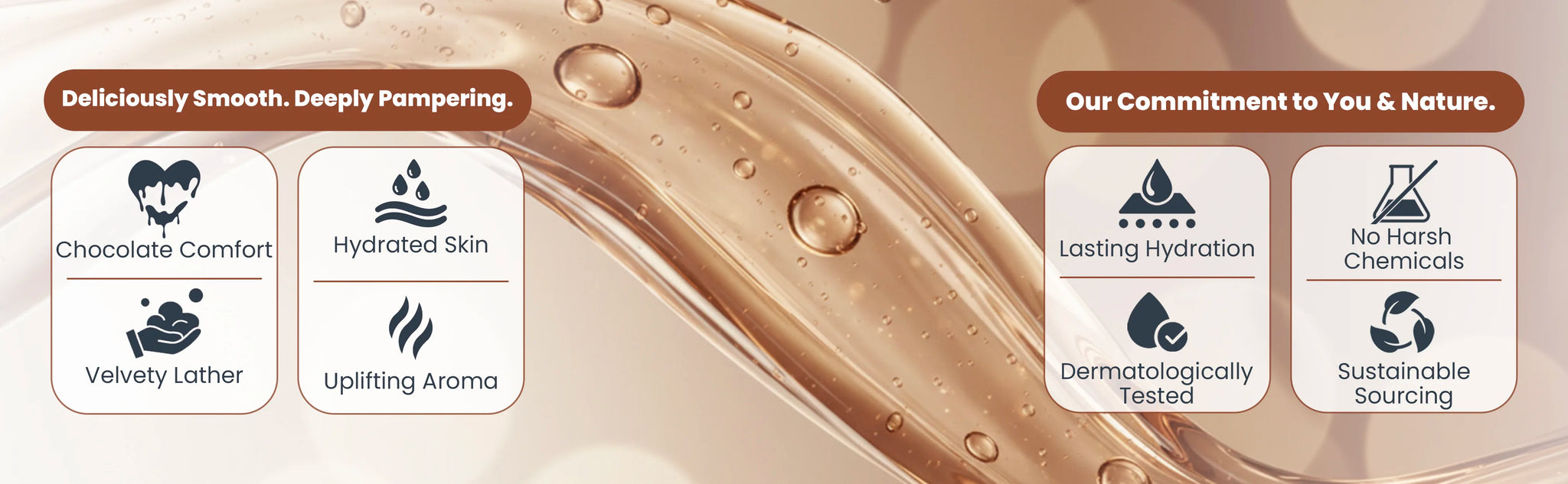 This natural chocolate body wash nourishes dry skin, leaving it soft, smooth, and deeply hydrated.