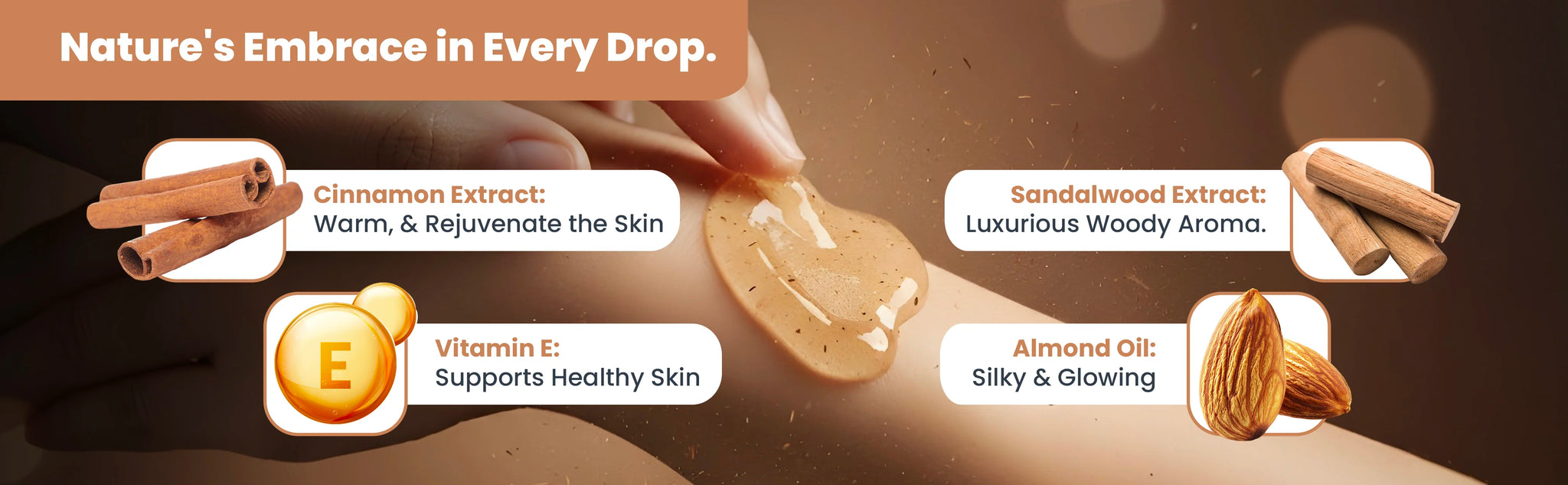 Cinnamon uplifts your mood while sandalwood calms your senses, making it ideal for both morning and night showers.