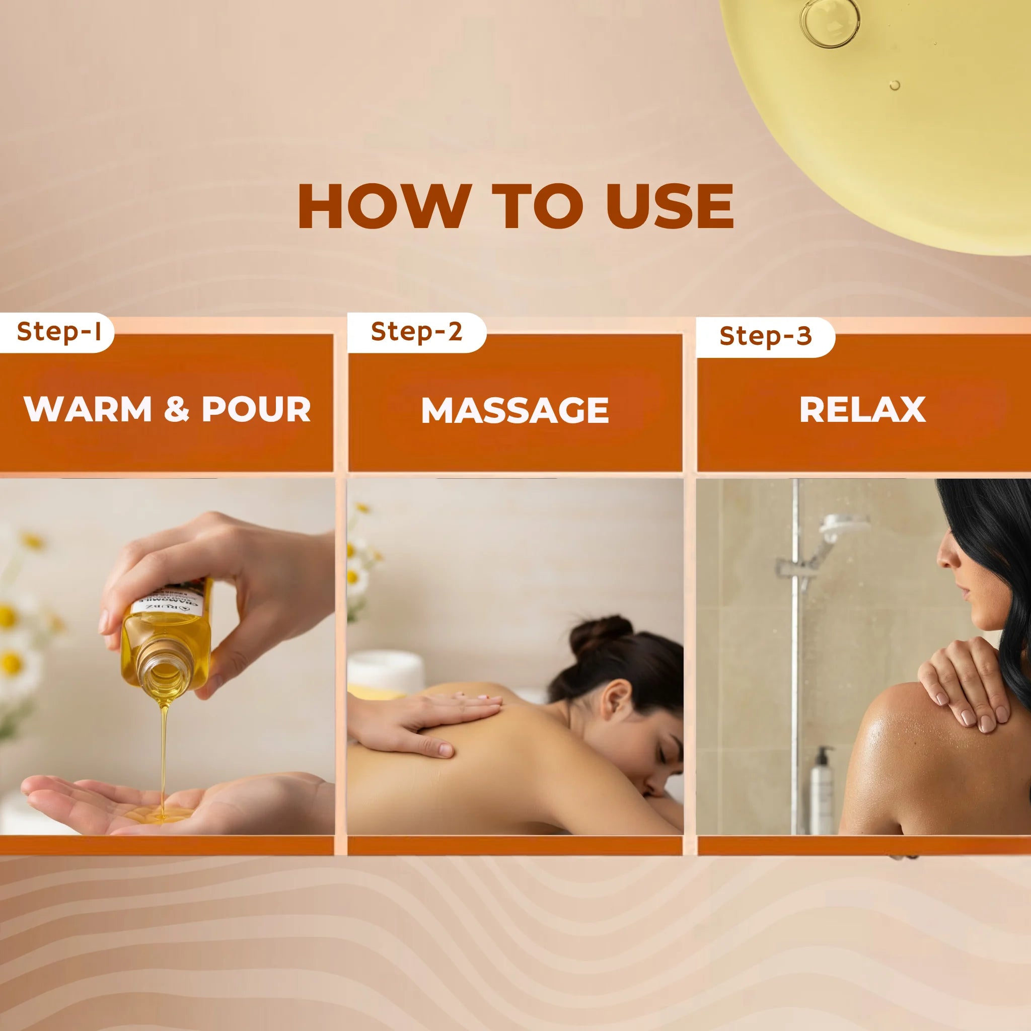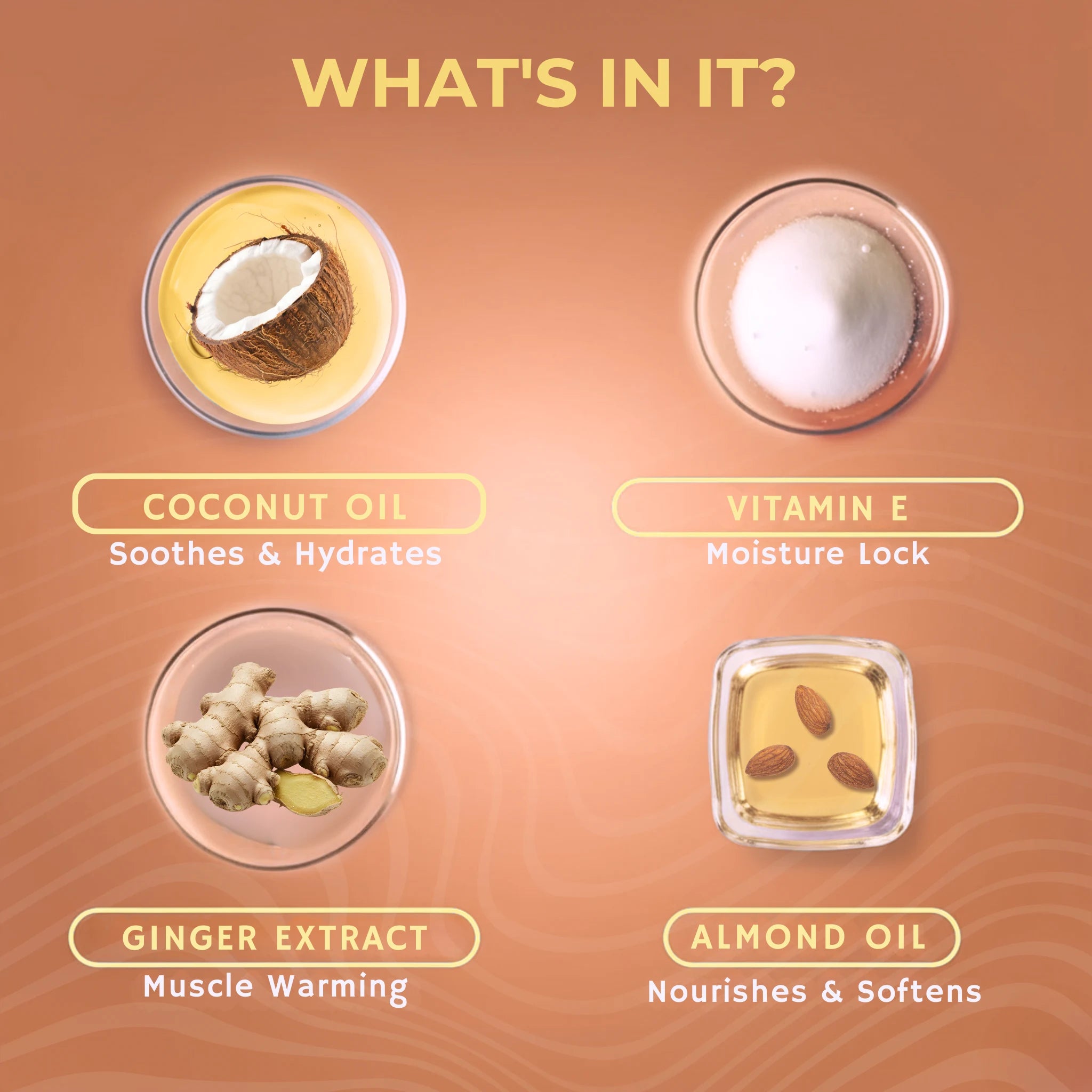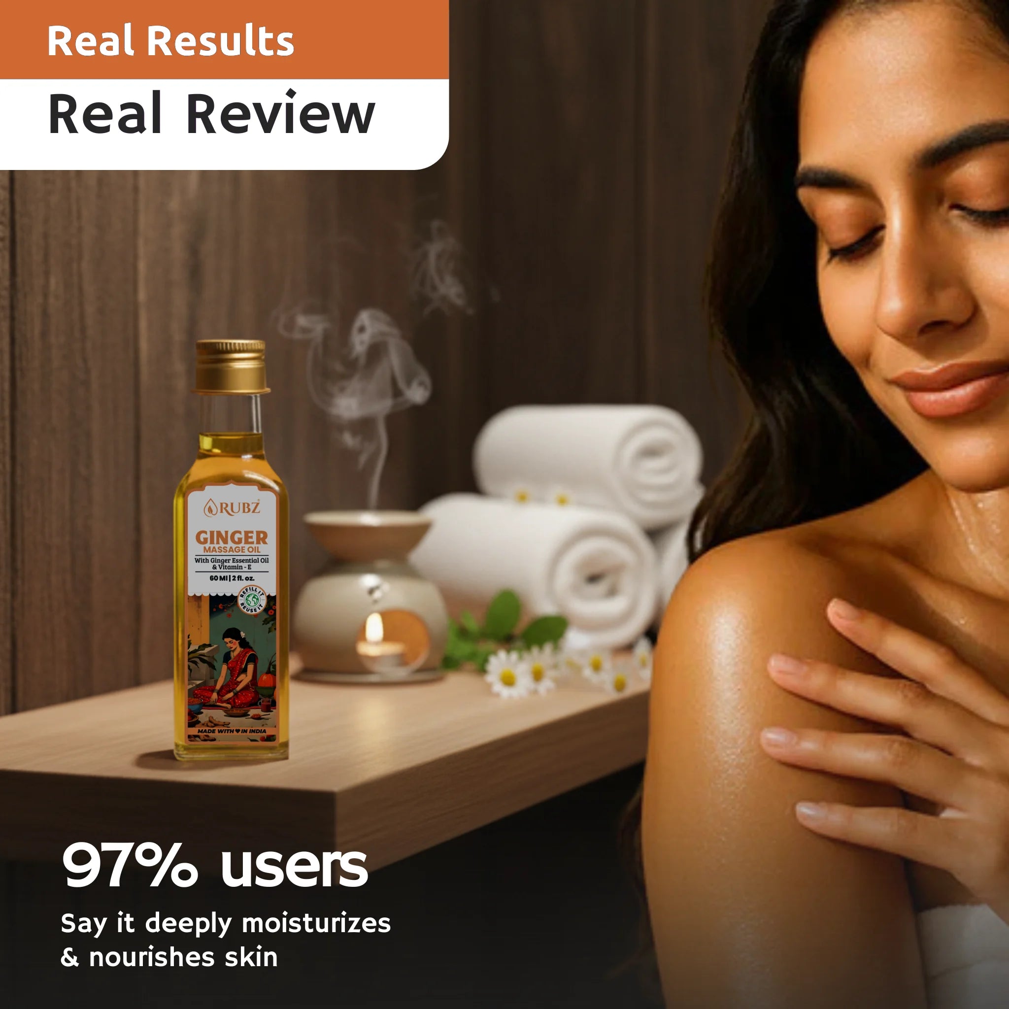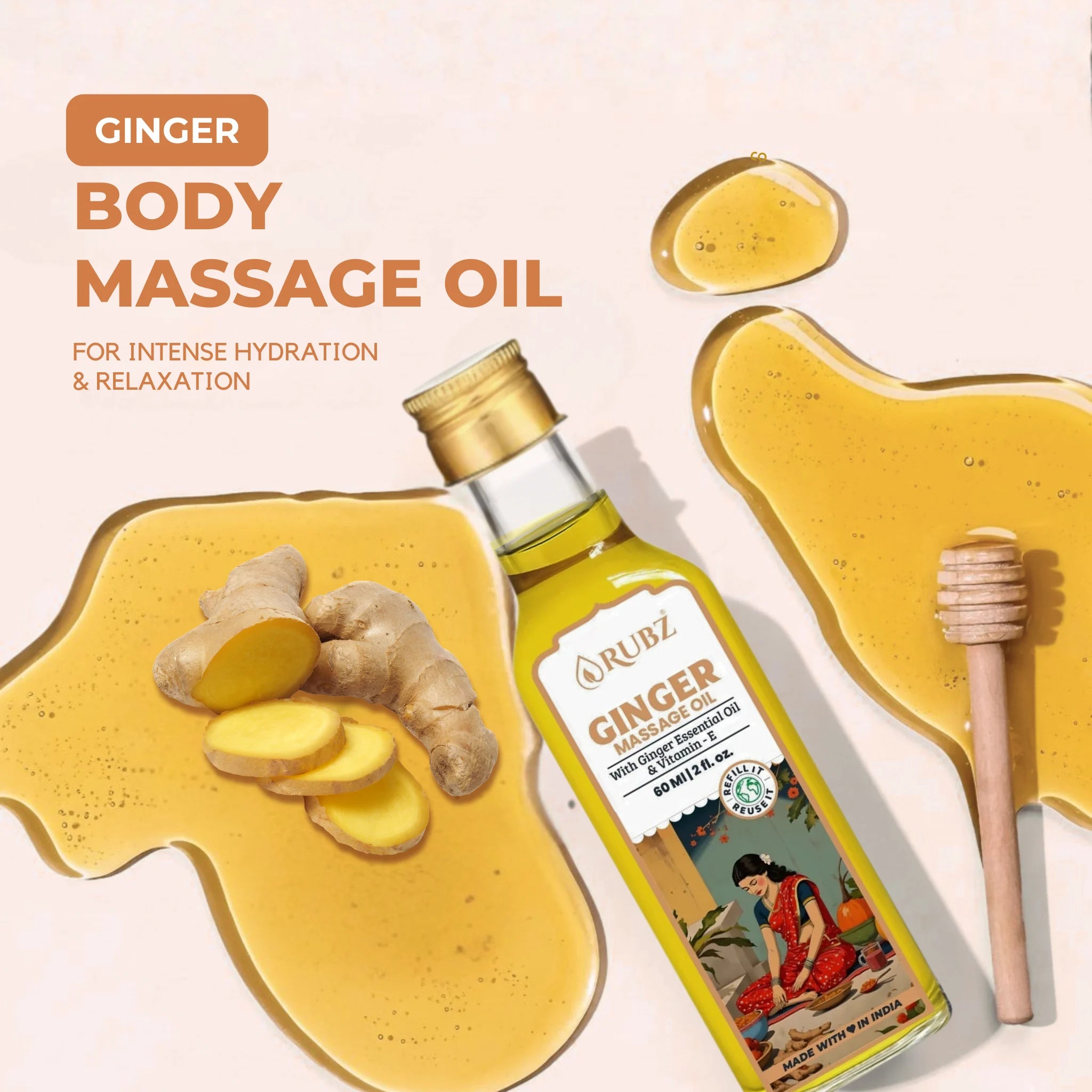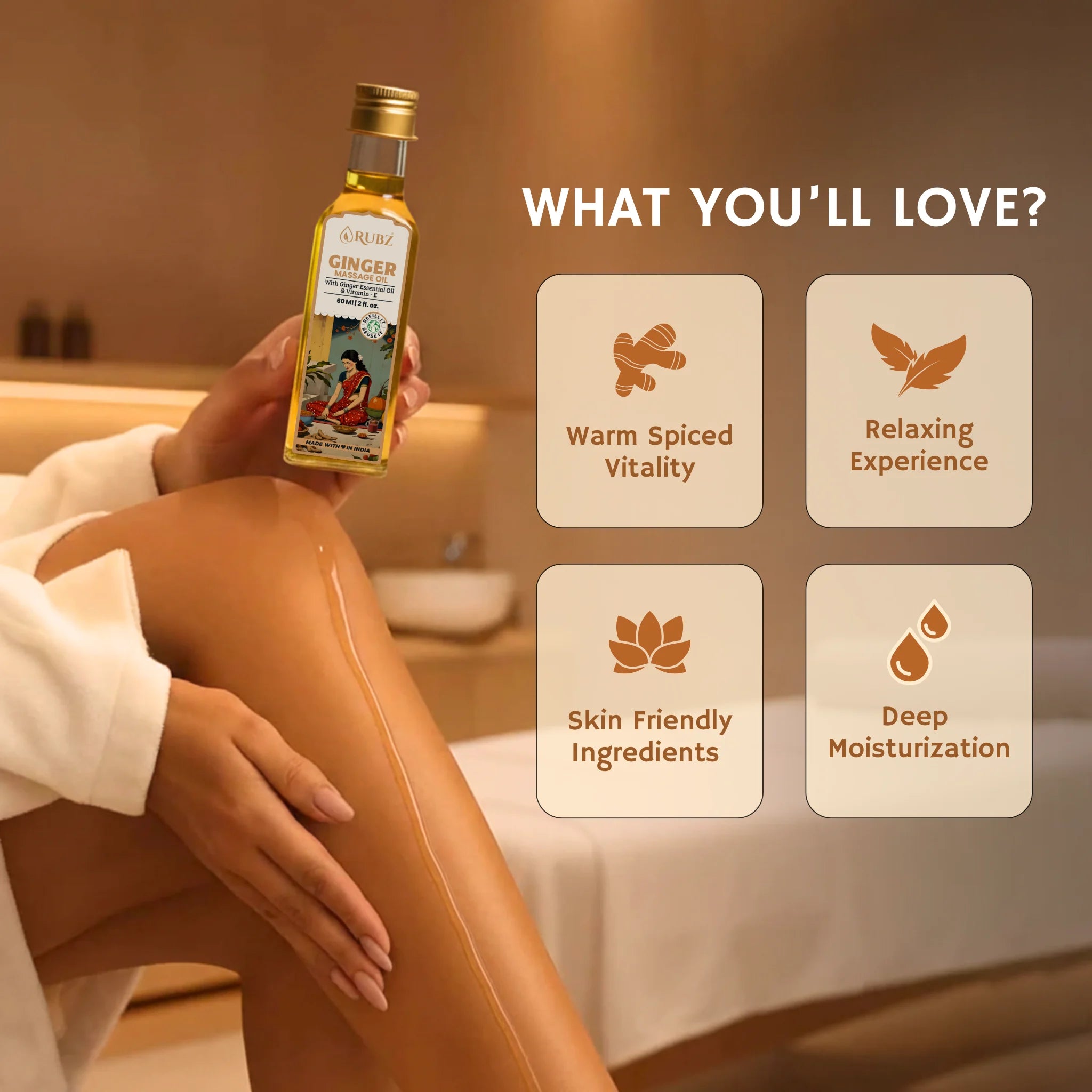 The herbal ginger massage oil helps improve blood flow, promoting relaxation and overall wellness.