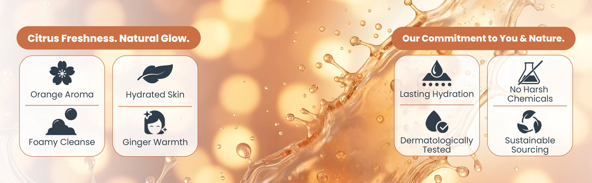 Our orange and ginger body wash combines the uplifting scent of fresh oranges with the invigorating warmth of ginger.