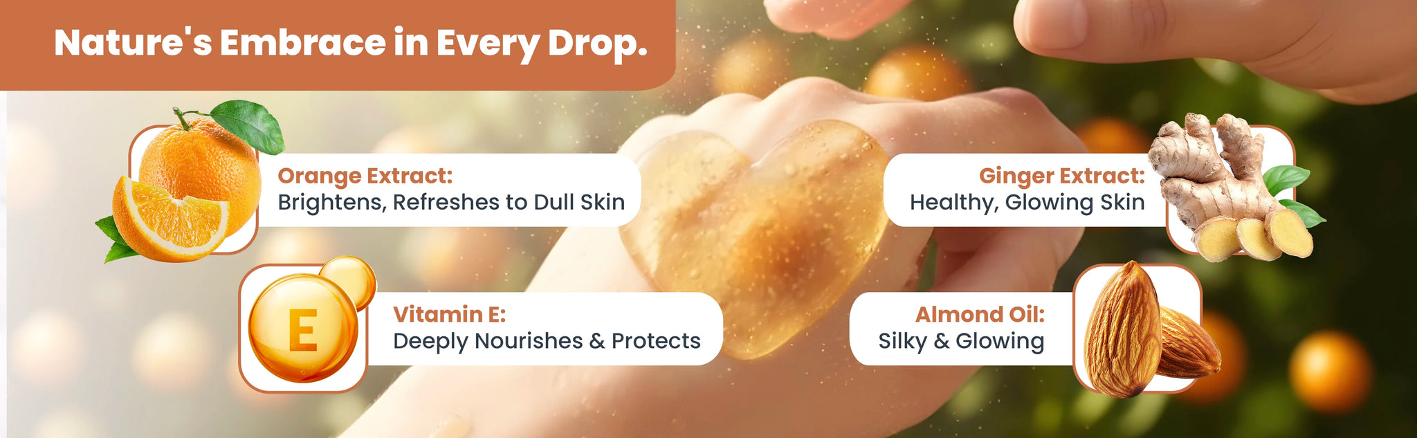 This natural orange ginger body wash brightens skin while protecting it from environmental damage.