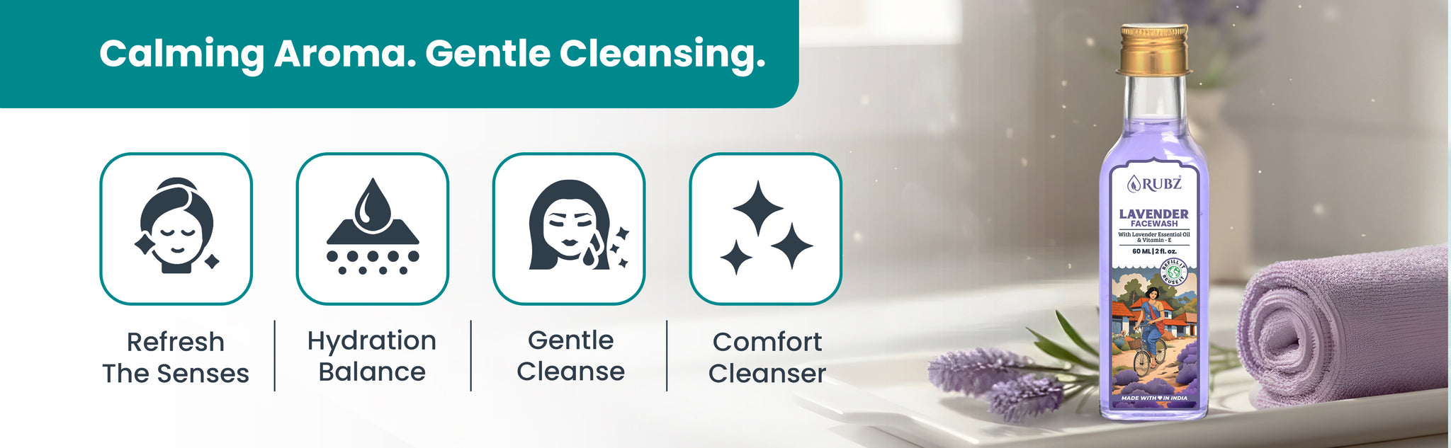A paraben free, sulphate free lavender face wash ideal for oily, dry, and sensitive skin. Gentle enough for acne-prone skin care.
