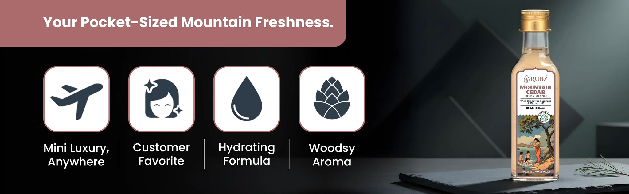Our mountain cedar body wash blends a fresh, woody aroma with the essence of nature for a revitalizing shower experience.