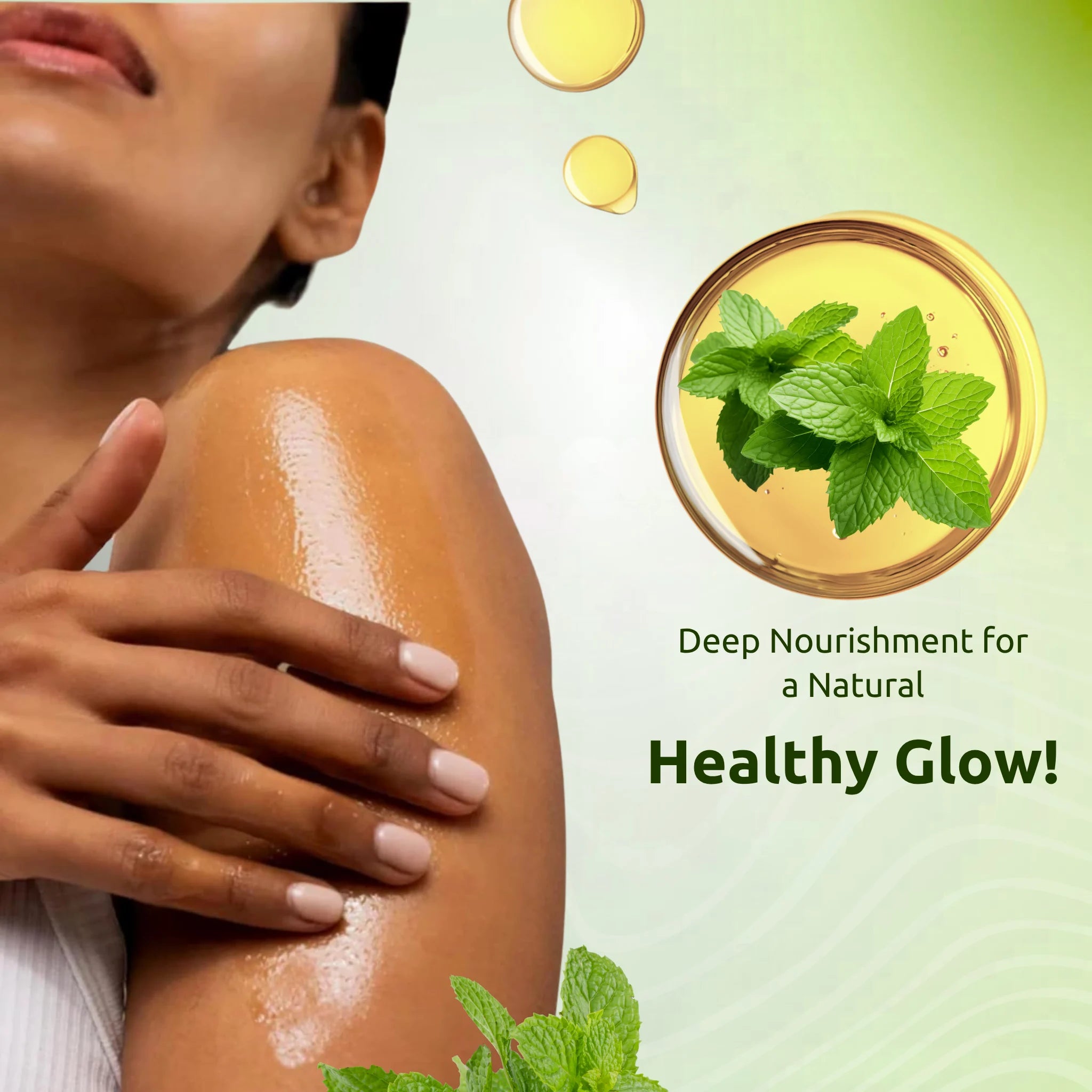 This natural peppermint body massage oil soothes sore muscles and helps ease body stiffness.