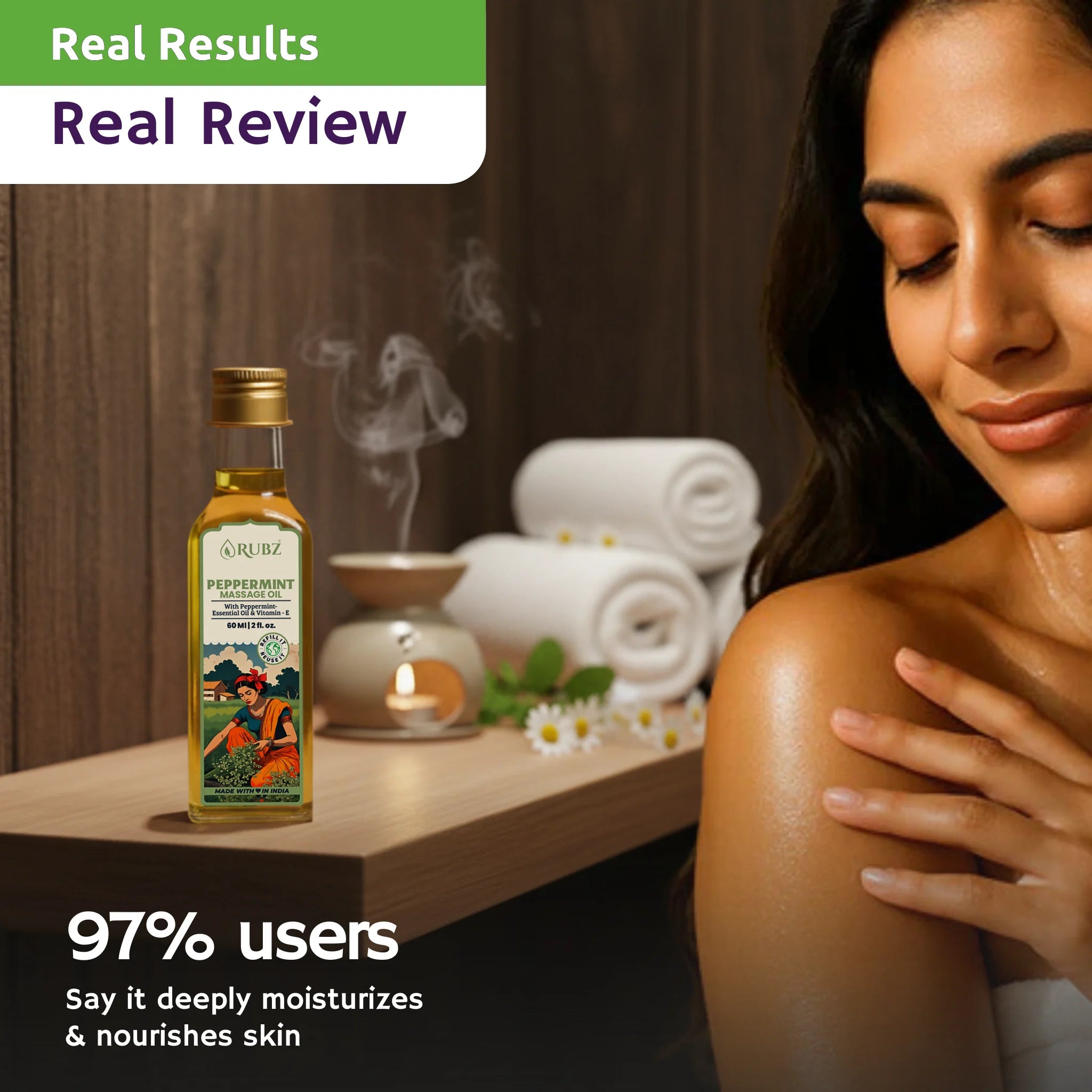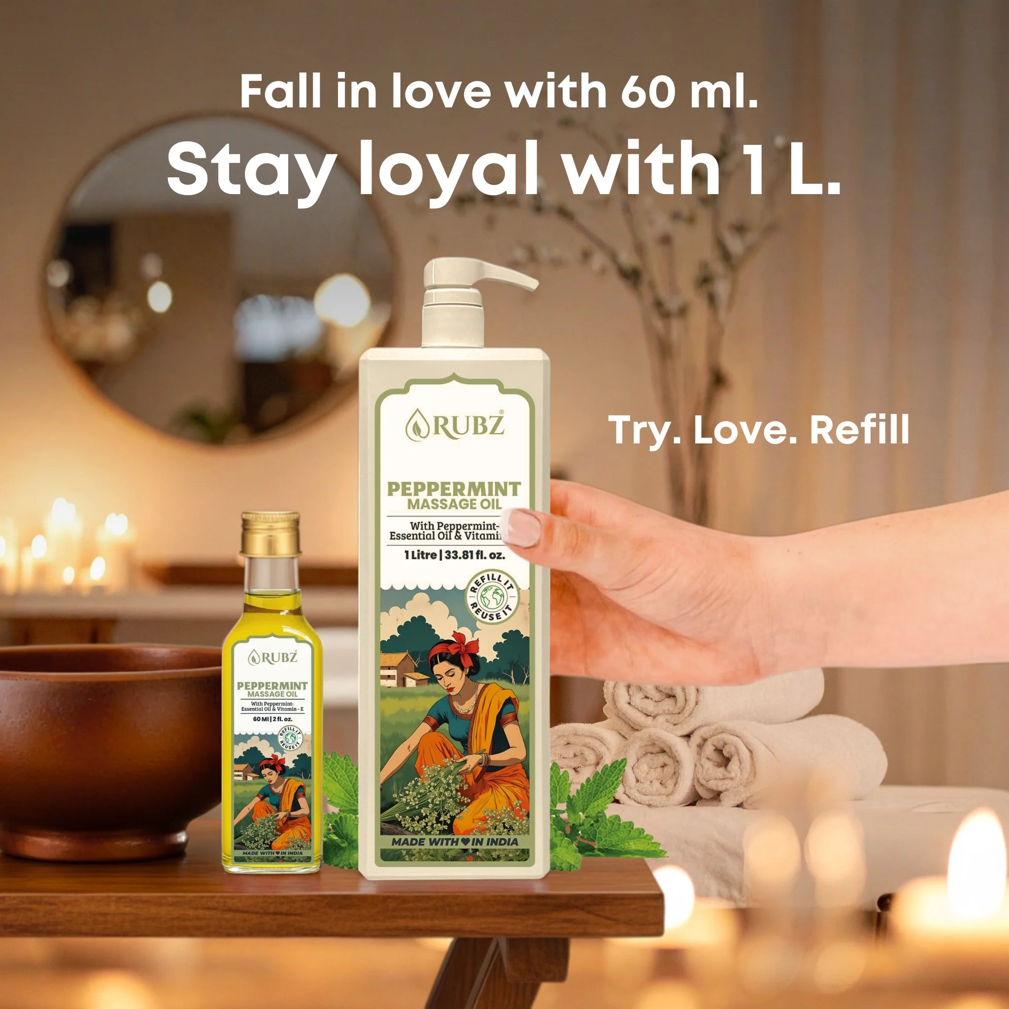 The herbal peppermint massage oil promotes healthy blood flow, leaving you feeling energized.