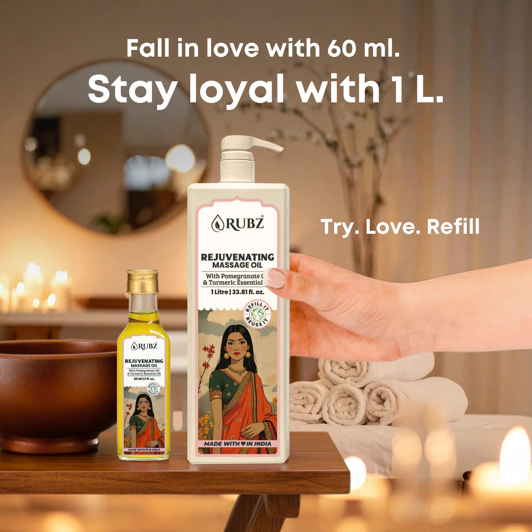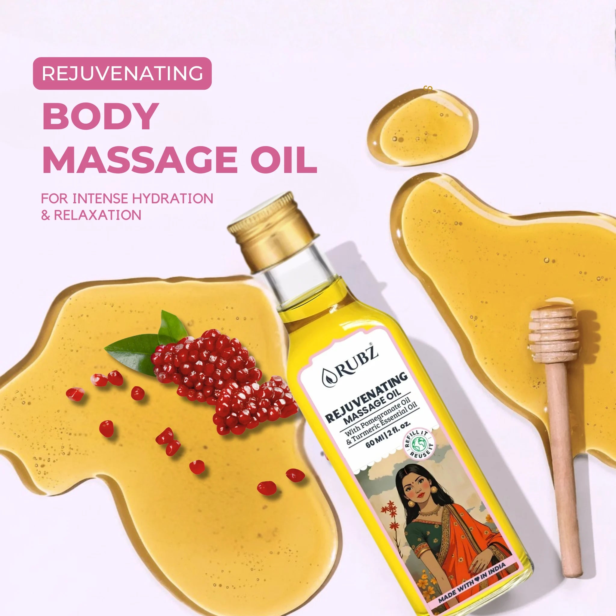 Our rejuvenating body massage oil restores your skin’s natural glow while refreshing tired muscles.