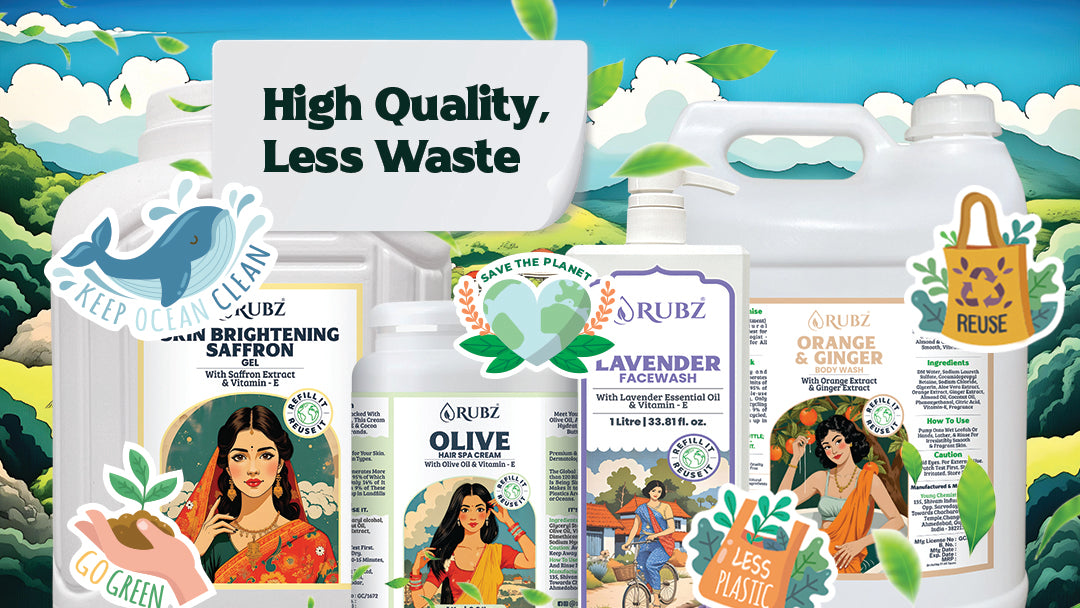 Ever Thought About Where All Those Little Bottles Go? Here's The Harsh Truth, The Global Beauty Industry Churns Out 120 Billion Packaging Units Every Year. And Guess What? Most Of Them Are Single-Use Plastic That's Just Destined For Landfills Or Worse, The Ocean. Crazy, Right? So, When We Started Rubz, We Thought. "Nah, That's Not Us. We're Here To Be Part Of The Solution."