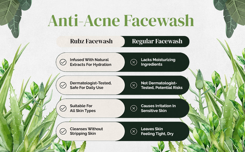 • Acne-Fighting Powerhouse: Rubz Anti-Acne Face Wash is formulated to tackle acne, pimples, and breakouts head-on, helping you achieve clearer and blemish-free skin.
