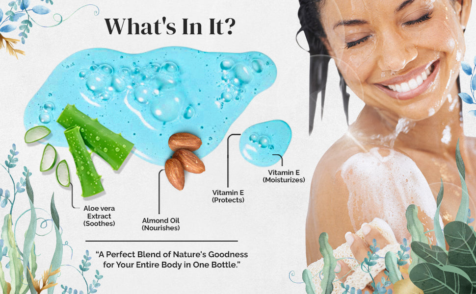 • Gentle cleansing: The gentle yet effective cleansing action of our body wash removes dirt, sweat, and impurities without stripping the skin of its natural oils, making it suitable for all skin types.