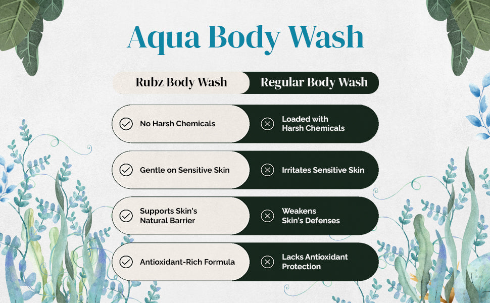 • Spa-Like Luxury at Home: Elevate your self-care routine to spa-worthy levels. The Aqua Body Wash creates a luxurious lather that pampers your skin and transforms your shower into a tranquil oasis of relaxation.