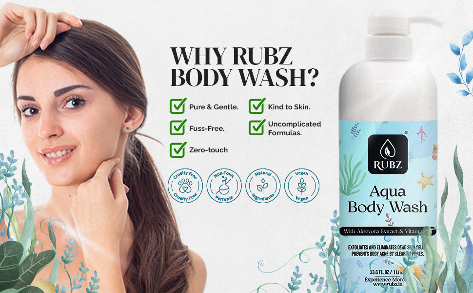 Wet Your Body with Water. Dispense A Small Amount of Rubz Aqua Body Wash. Lather It Up and Apply It to Your Skin. Gently Cleanse Your Entire Body. Rinse Thoroughly with Warm Water. Pat Dry with A Towel. Optionally, Apply Moisturizer for Dry Skin. Rinse Off Any Body Wash in The Shower or Bath Area.