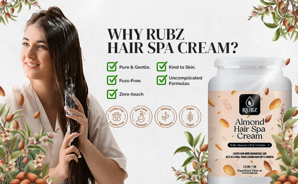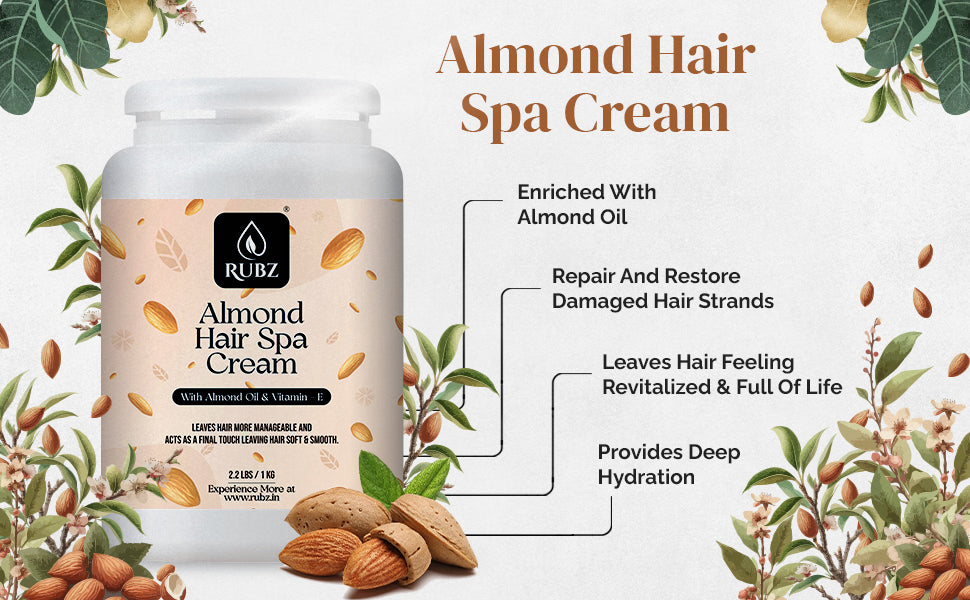 - Enhance Natural Shine: Unleash your hair's natural brilliance with Rubz Almond Hair Spa Cream. It amplifies your hair's shine, leaving it looking radiant and full of life.