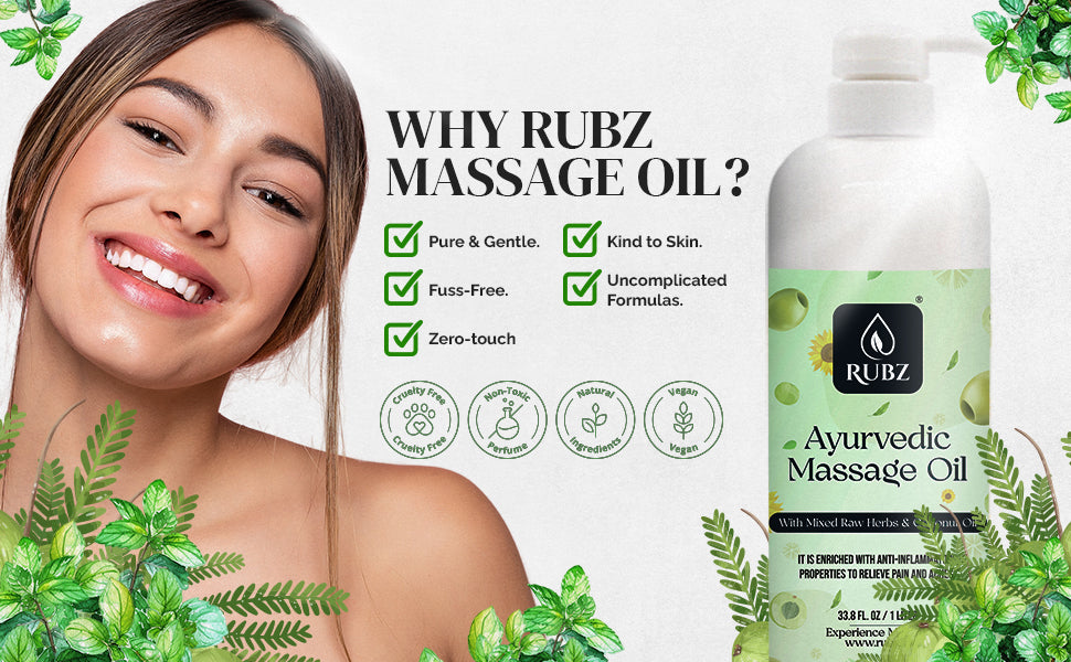 - Nourishing Skin Care: Beyond its therapeutic benefits, Rubz Ayurvedic Massage Oil is a treat for your skin. It nourishes and hydrates, leaving your skin soft, supple, and glowing, making it a perfect addition to your self-care routine.