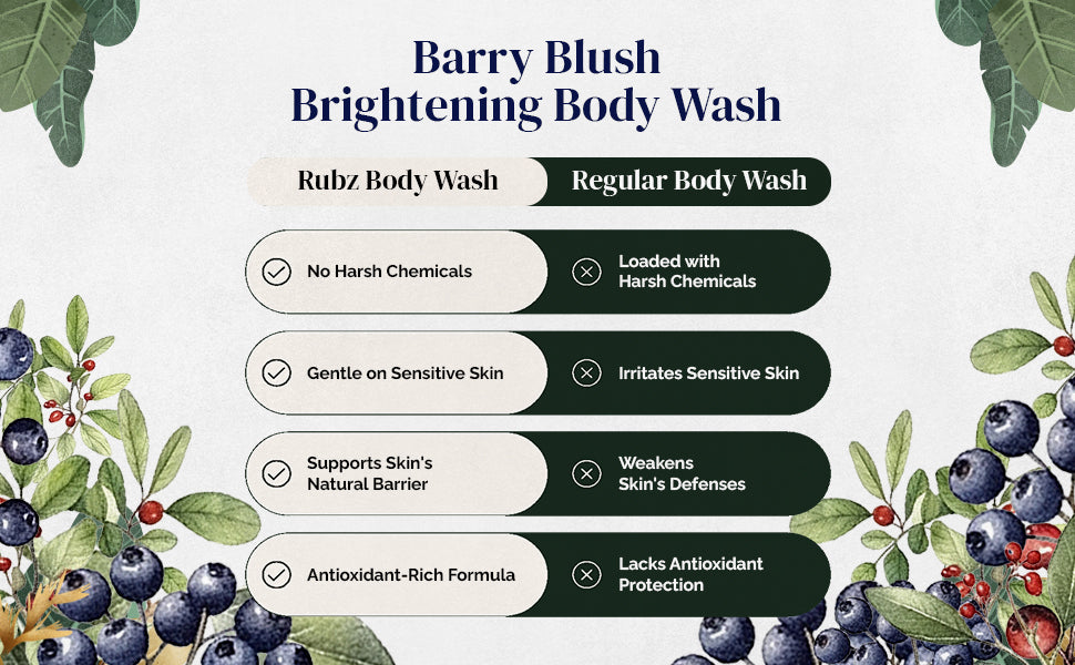- Hydrating Formula: Formulated with nourishing ingredients, Rubz Body wash helps maintain skin’s natural moisture barrier, preventing dryness and promoting soft & supple skin.