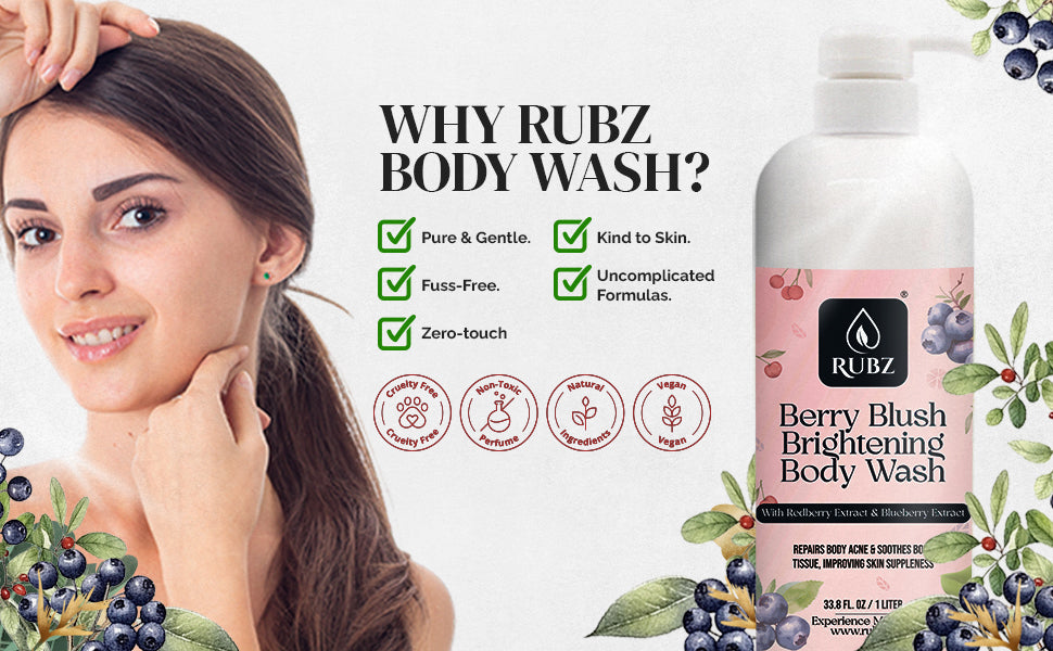 - Vegan and Cruelty-Free: Rubz Body wash is crafted with a commitment to being both vegan and cruelty-free, ensuring a product that is ethical, sustainable, and kind to animals.