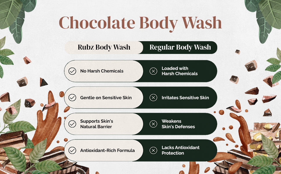 - Perfect Gift of Indulgence: Elevate gifting with Rubz Chocolate Body Wash. Packaged with sophistication, it makes for an ideal present for friends, family, or yourself—unleash the joy of indulgence and let the irresistible allure of chocolate transform your everyday routine.