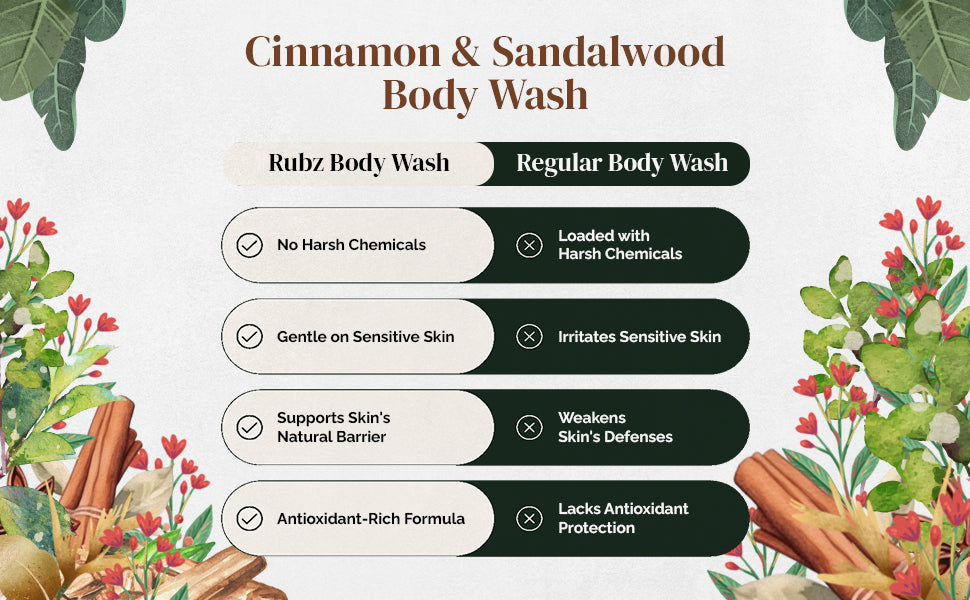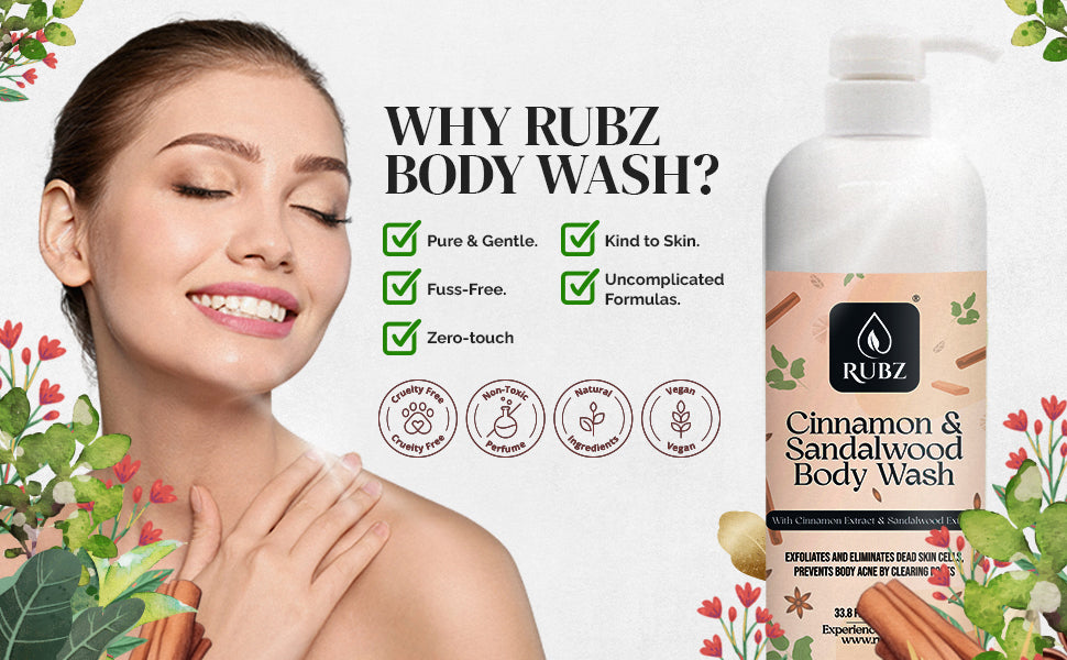 - Hydrating Formula: Formulated with nourishing ingredients, Rubz Body wash helps maintain skin’s natural moisture barrier, preventing dryness and promoting soft & supple skin.