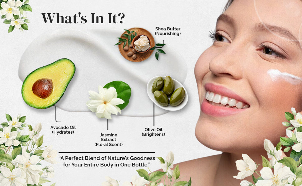 Rubz Jasmine Body Cream is specially formulated to tackle harsh winter dryness common in northern India. Enriched with jasmine extract and Vitamin E, it provides intense hydration and helps prevent flaking, itching, or cracking of the skin. The cream deeply nourishes without being greasy, making it ideal for daily winter use.