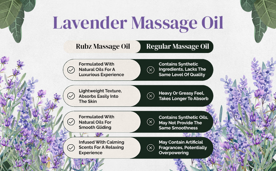 - Skin Rejuvenation: Enriched with natural botanical extracts, our Lavender Body Massage Oil nourishes and hydrates your skin, leaving it soft, supple, and beautifully rejuvenated. Pamper your skin while indulging in a relaxing massage.
