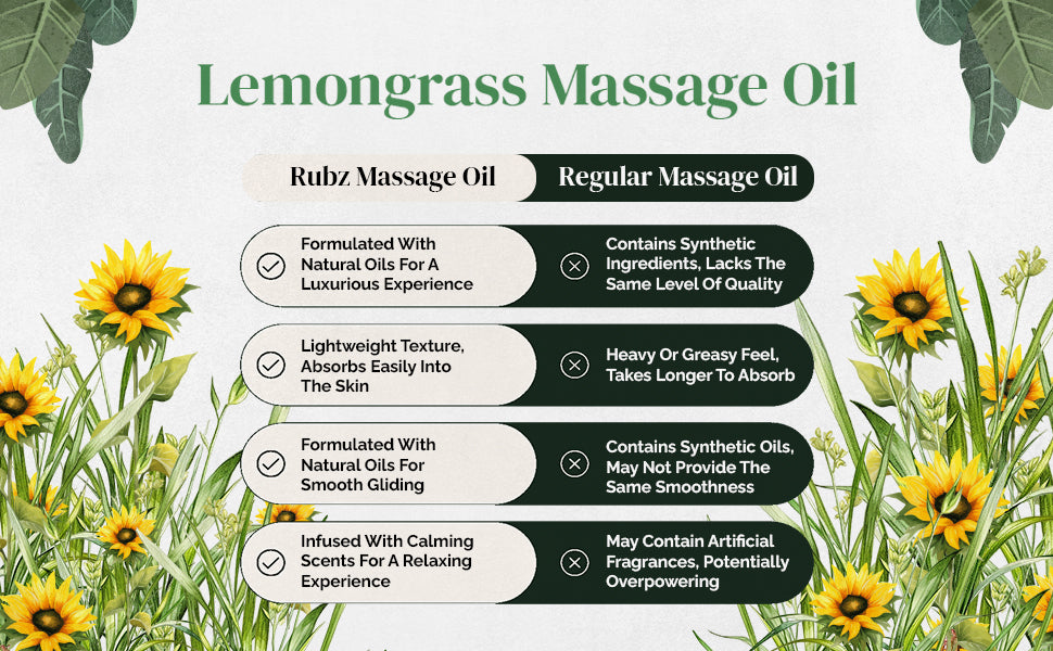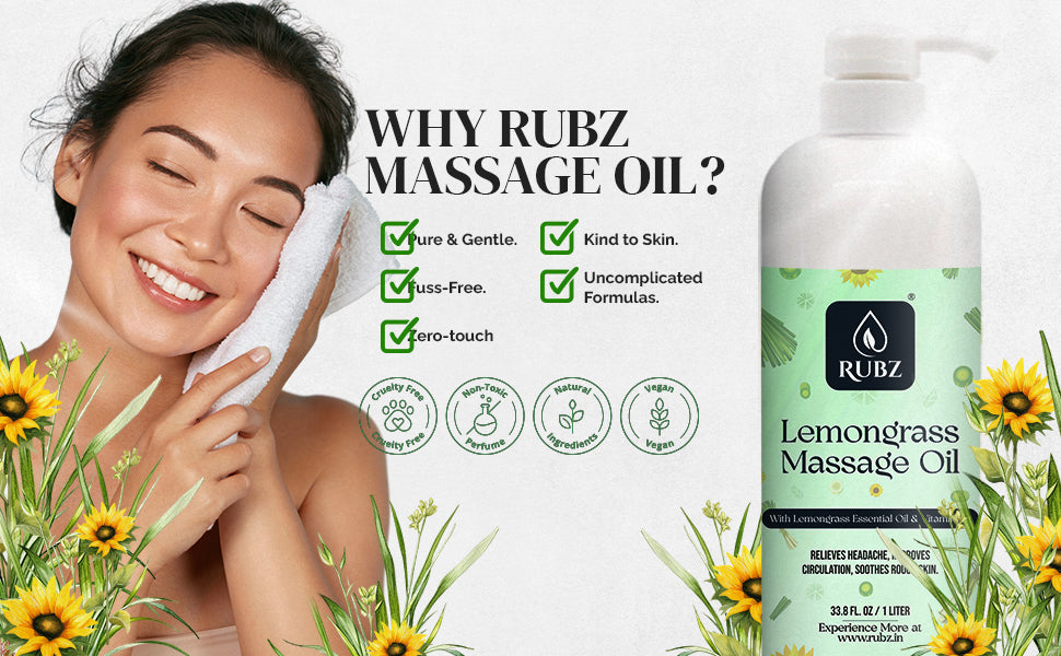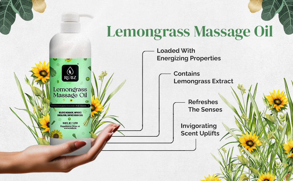 - Skin Revitalization: Enriched with natural botanical extracts, Rubz Lemongrass Body Massage Oil nourishes and hydrates your skin, leaving it soft, supple, and beautifully rejuvenated. Enjoy a dual benefit of relaxation and skin pampering.