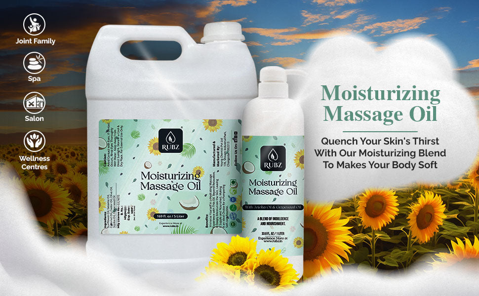 - Deep Hydration with Jojoba Oil and Grapeseed Oil: Immerse your skin in the luxurious moisture of Rubz Moisturizing Massage Oil, enriched with the nourishing properties of jojoba oil and grapeseed oil. This potent combination ensures deep hydration, leaving your skin soft, supple, and thoroughly moisturized.