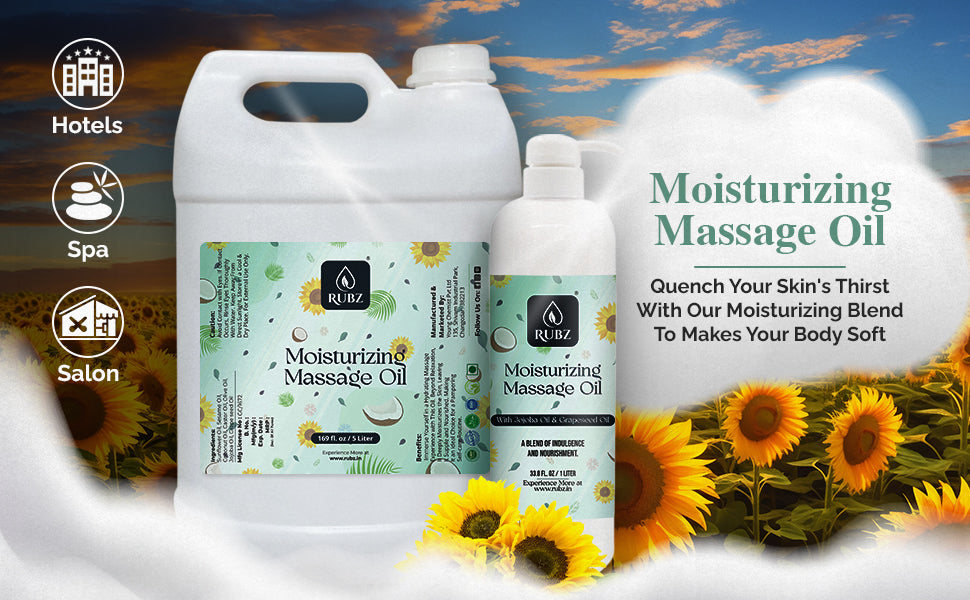 - Deep Hydration with Jojoba Oil and Grapeseed Oil: Immerse your skin in the luxurious moisture of Rubz Moisturizing Massage Oil, enriched with the nourishing properties of jojoba oil and grapeseed oil. This potent combination ensures deep hydration, leaving your skin soft, supple, and thoroughly moisturized.