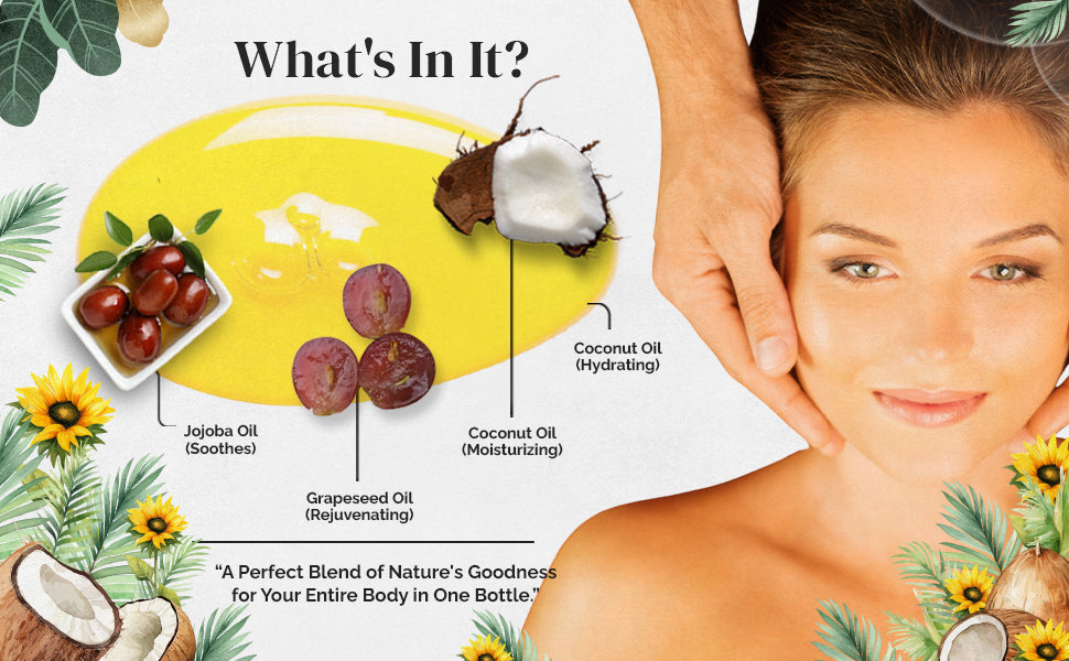- Natural Nourishment for Skin Vitality: Experience the natural goodness of jojoba oil and grapeseed oil as they work in harmony to nourish your skin. Packed with essential vitamins and antioxidants, this massage oil promotes skin vitality, contributing to a radiant and healthy complexion.