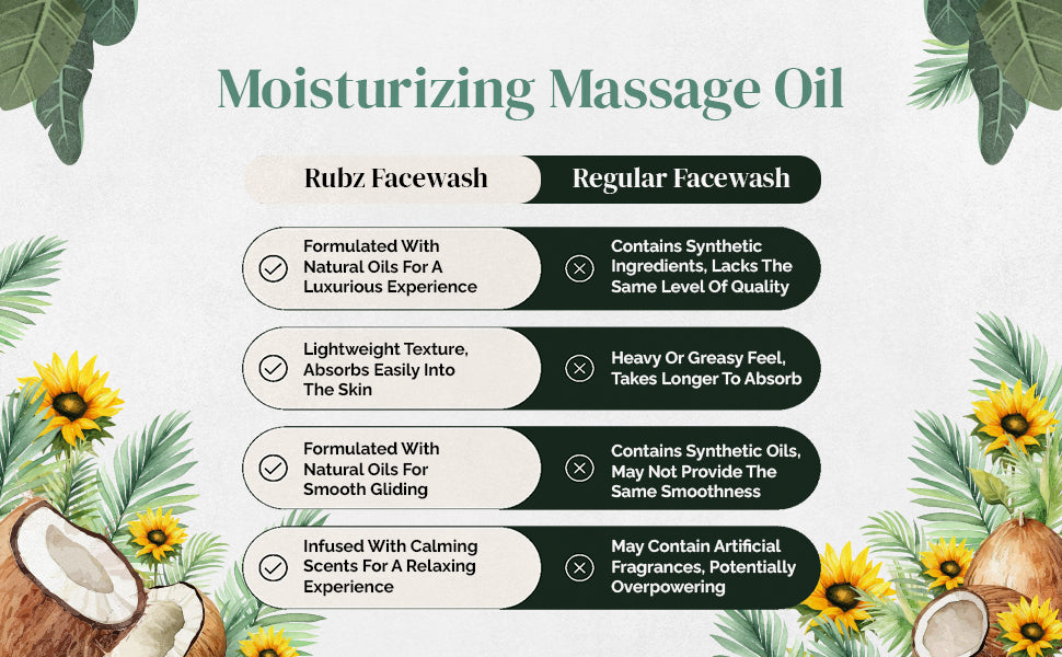 - Fast Absorption, Non-Greasy Finish: Indulge in the fast-absorbing formula of Rubz Moisturizing Massage Oil, ensuring a non-greasy finish. This allows for a seamless massage experience, leaving your skin feeling silky-smooth without any residual oiliness.