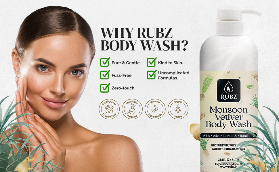 - Hydrating Formula: Formulated with nourishing ingredients, Rubz Body wash helps maintain skin’s natural moisture barrier, preventing dryness and promoting soft & supple skin.