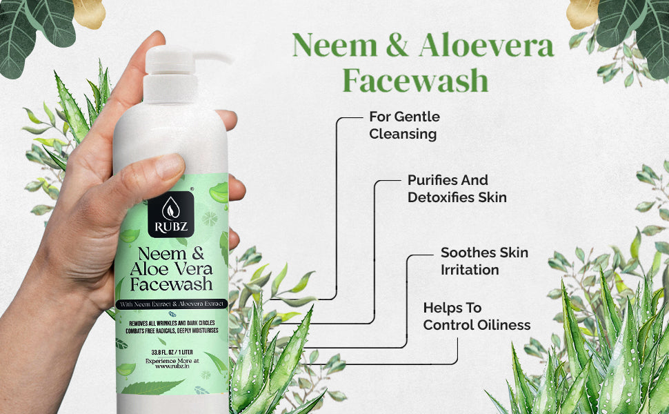- Natural Purification: Rubz Neem and Aloe Vera Face Wash harnesses the purifying power of Neem to gently cleanse and detoxify your skin, leaving it refreshed and revitalized.